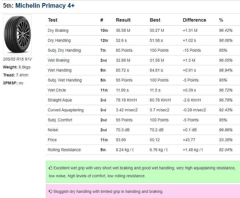 - Michelin Primacy 4+