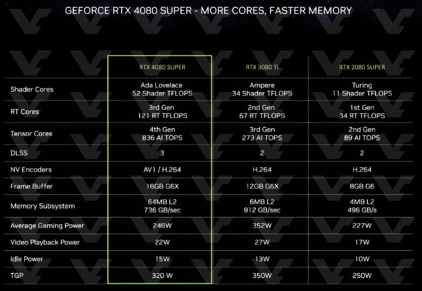 Ultimul și cel mai performant model al familiei Super este RTX 4080 Super. Cu 40% mai rapidă decât un RTX 3080 Ti în modul brut, fără DLSS, aceasta va fi disponibilă începând cu 31 ianuarie contra sumei de 5500Ron.