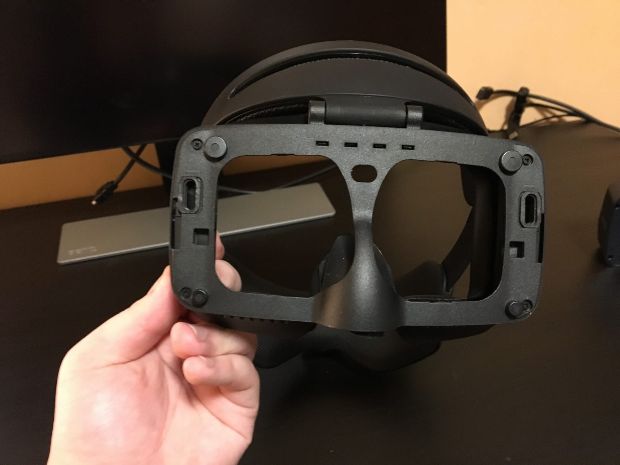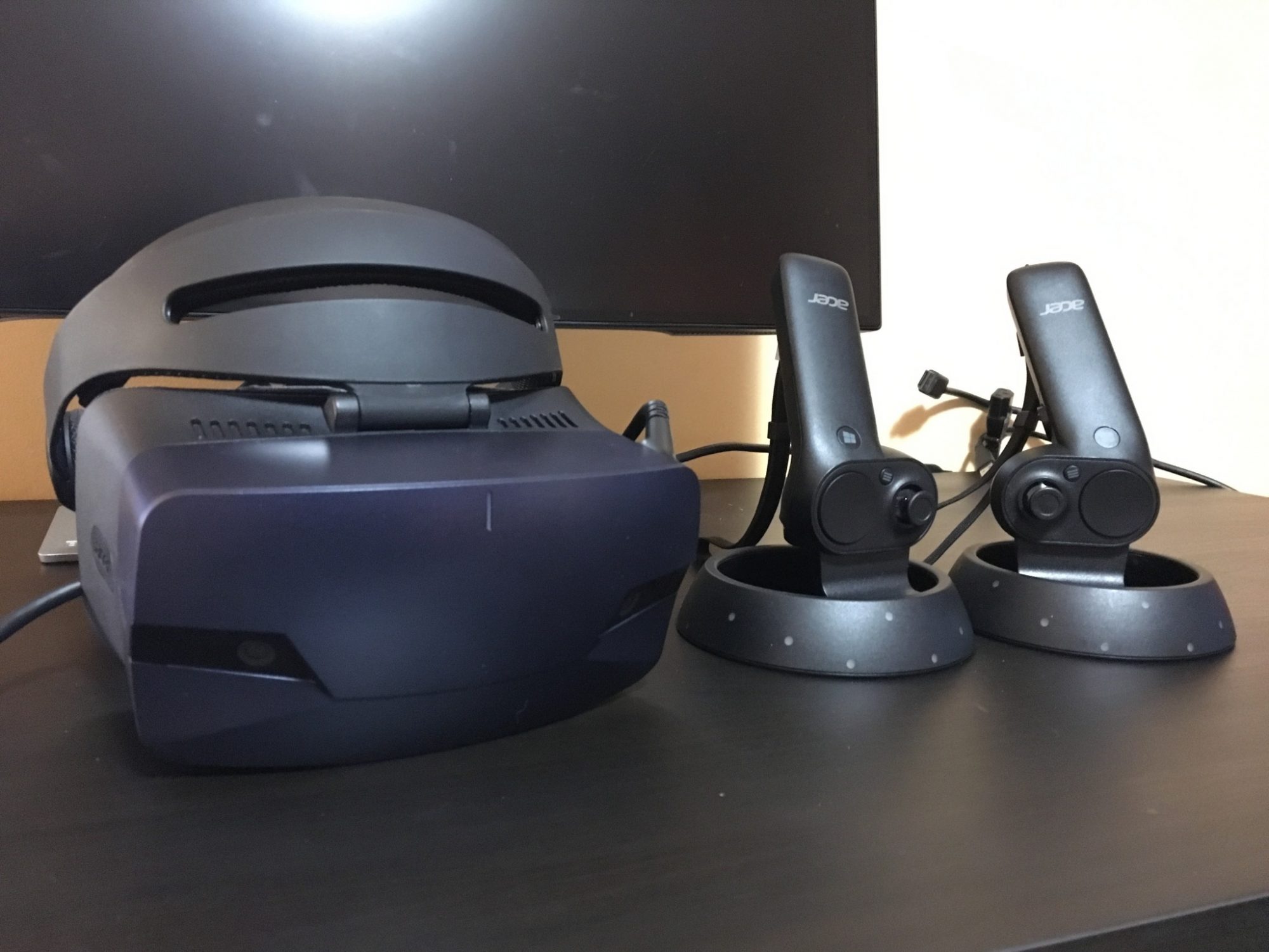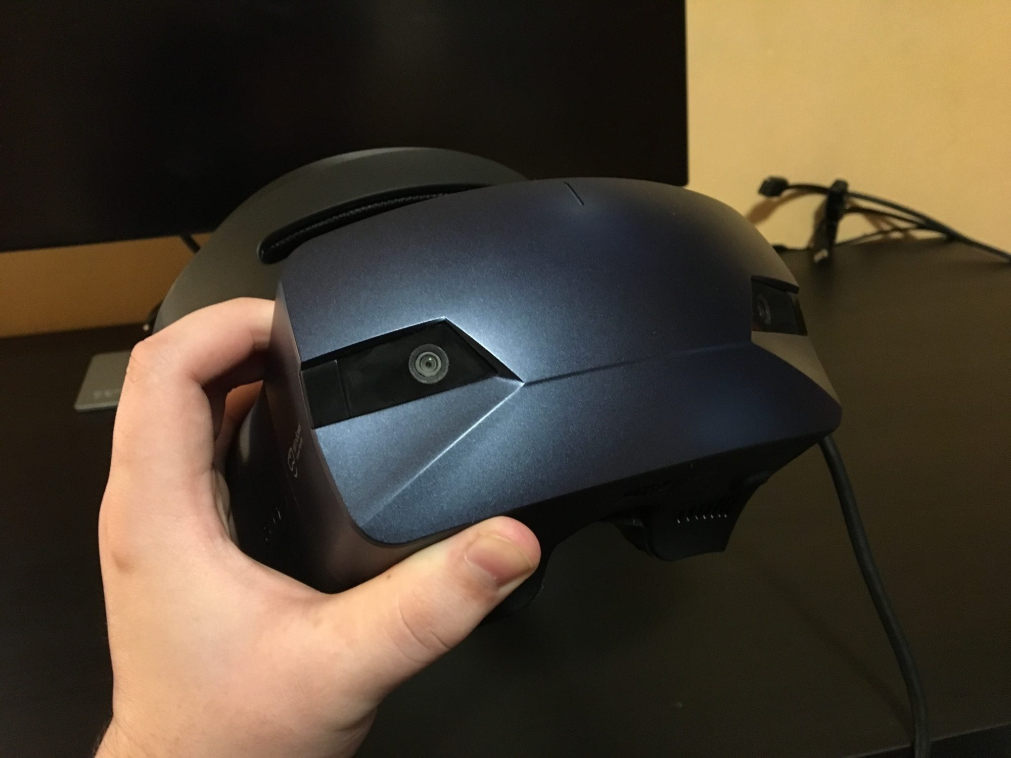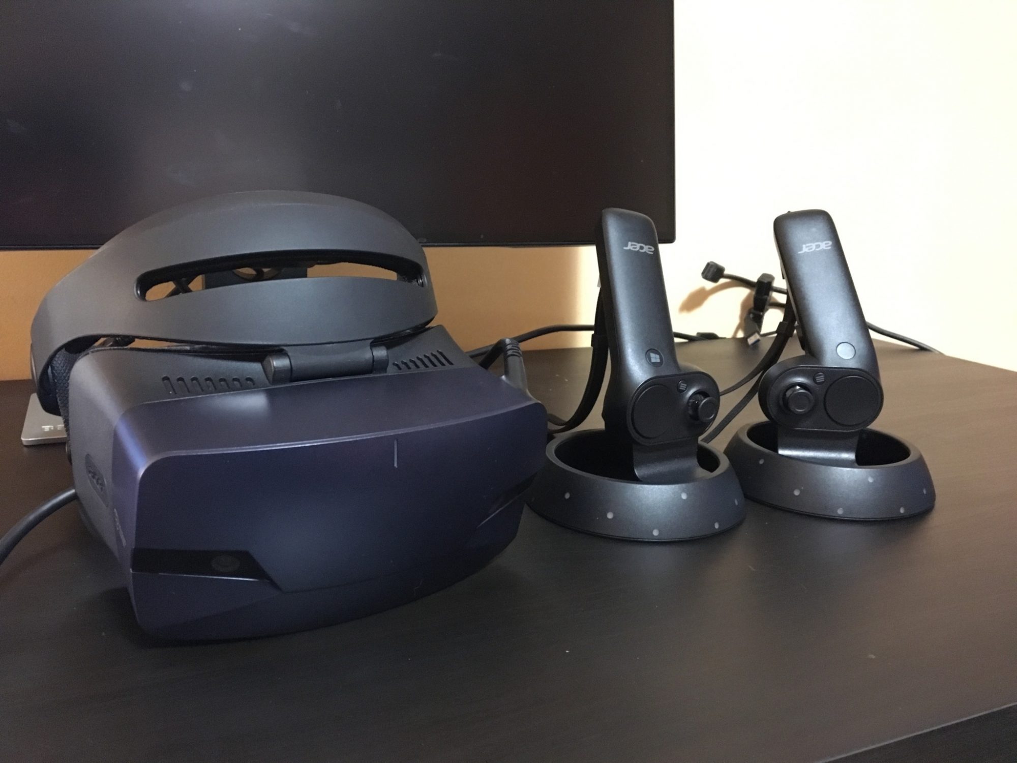 Conectarea la PC se realizeaza prin HDMI si USB 3.0. Problema este cum a decis Acer sa amplaseze cablul pe casca. Acesta iese din coltul din stanga sus si il simti atunci cand folosesti casca. Este destul de greu, il atingi si devine enervant.