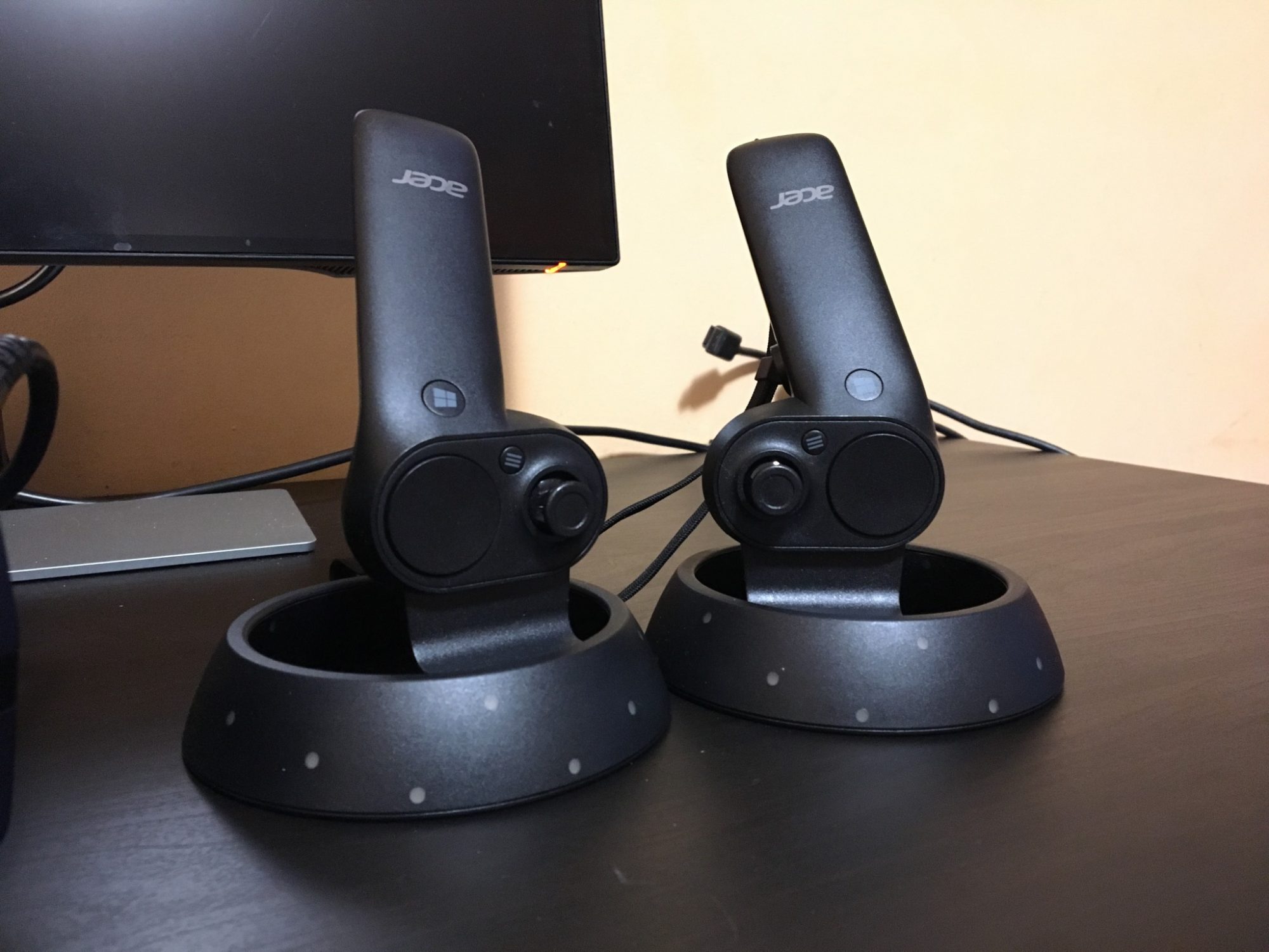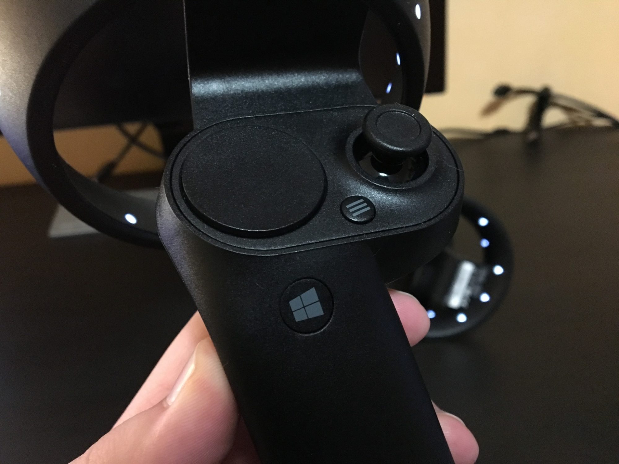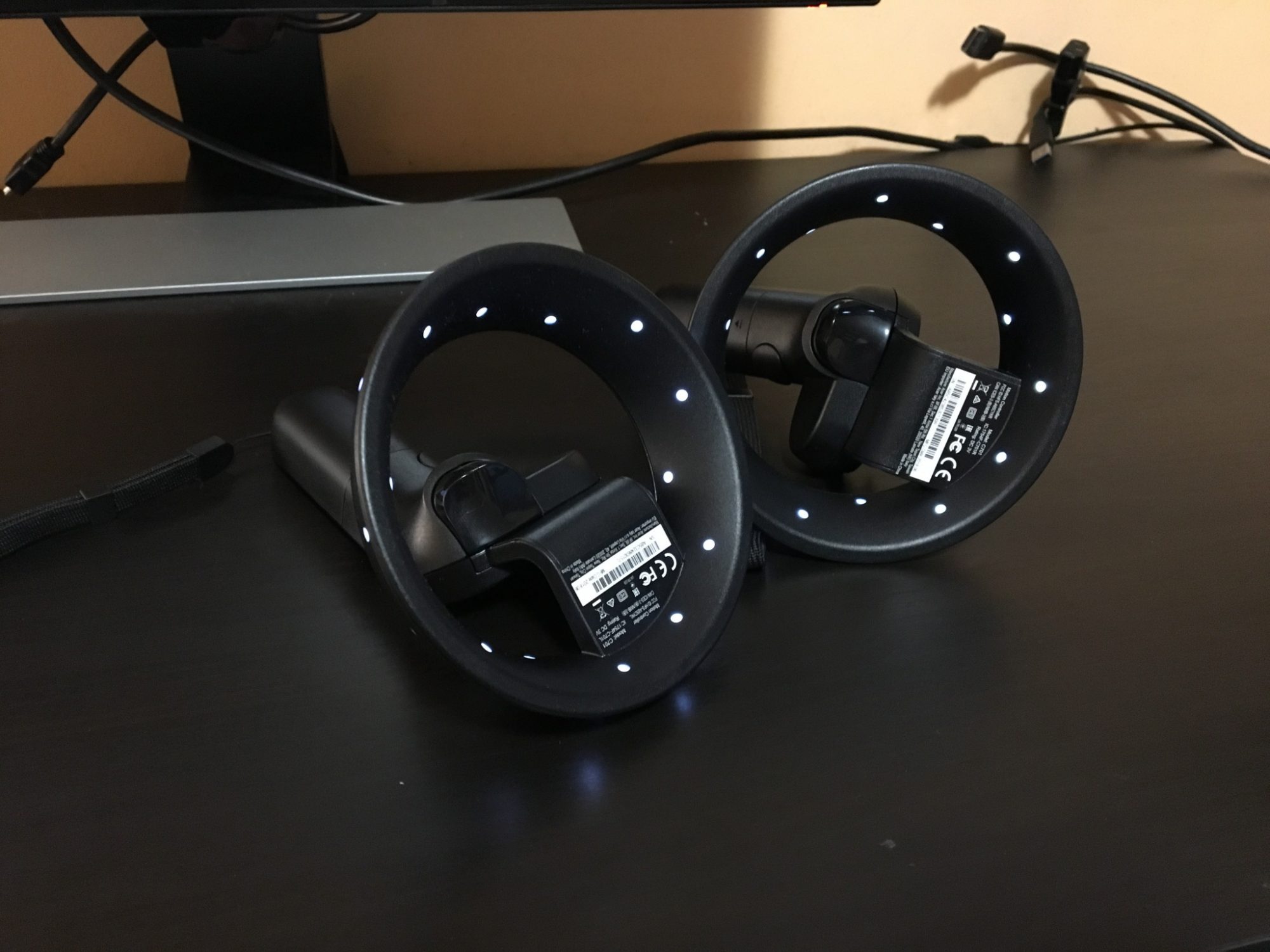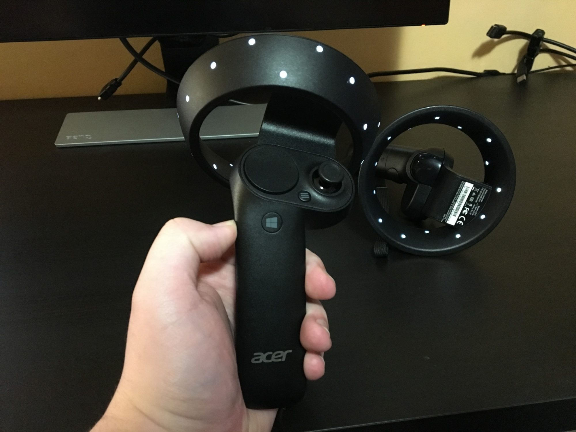 Tot ce trebuie sa faci este sa pornesti controllerele si sa le imperechezi cu casca apasand un mic buton amplasat sub capacul bateriilor. Ele sunt identice cu cele de anul trecut, absolut nimic schimbat.