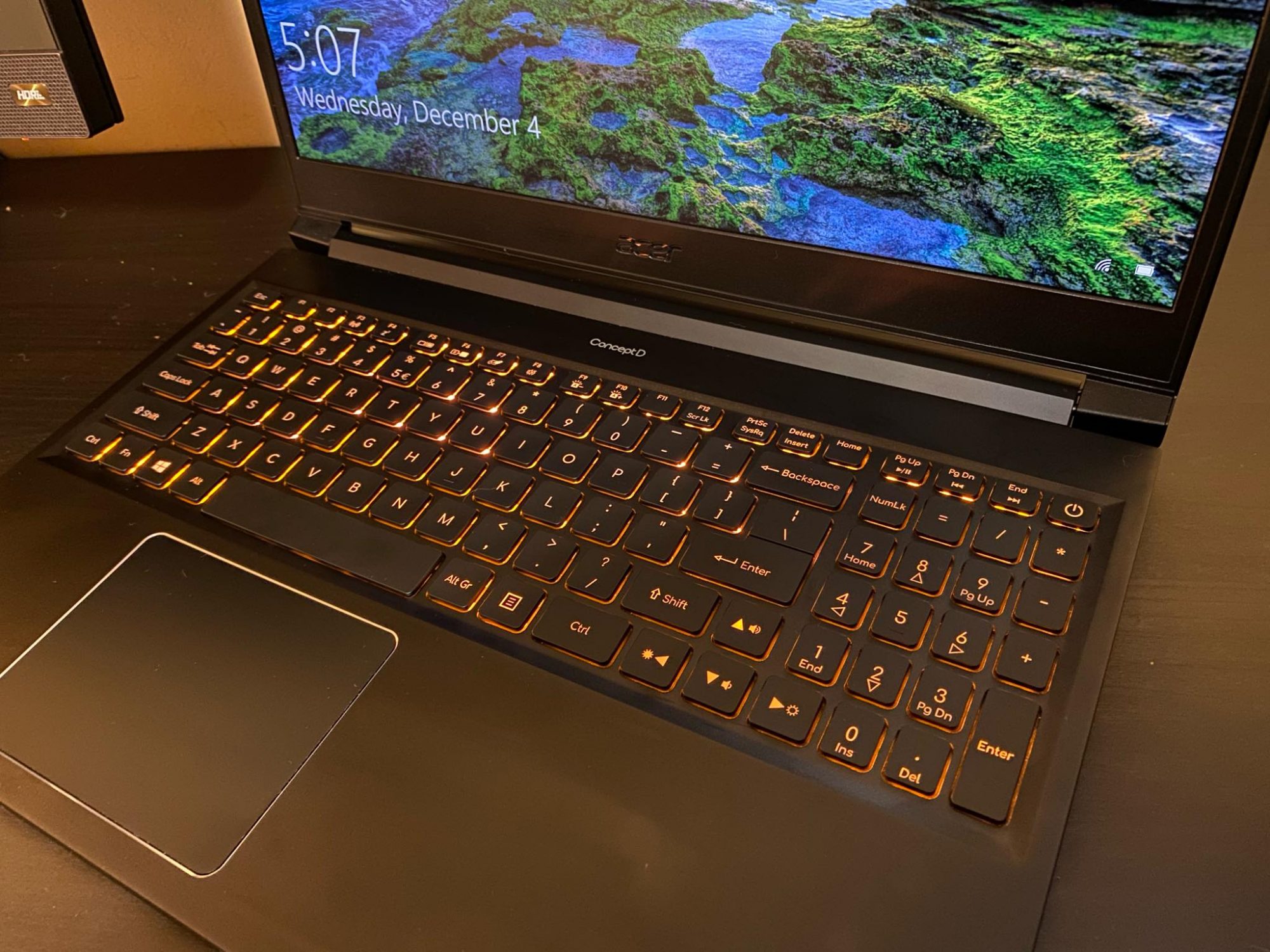 Tastatura este iluminata in culoarea portocaliu pentru a diferentia seria ConceptD de Nitro. Tastele au ramas aceleasi, unele foarte bune, comode si cu feedback bun la apasare.
