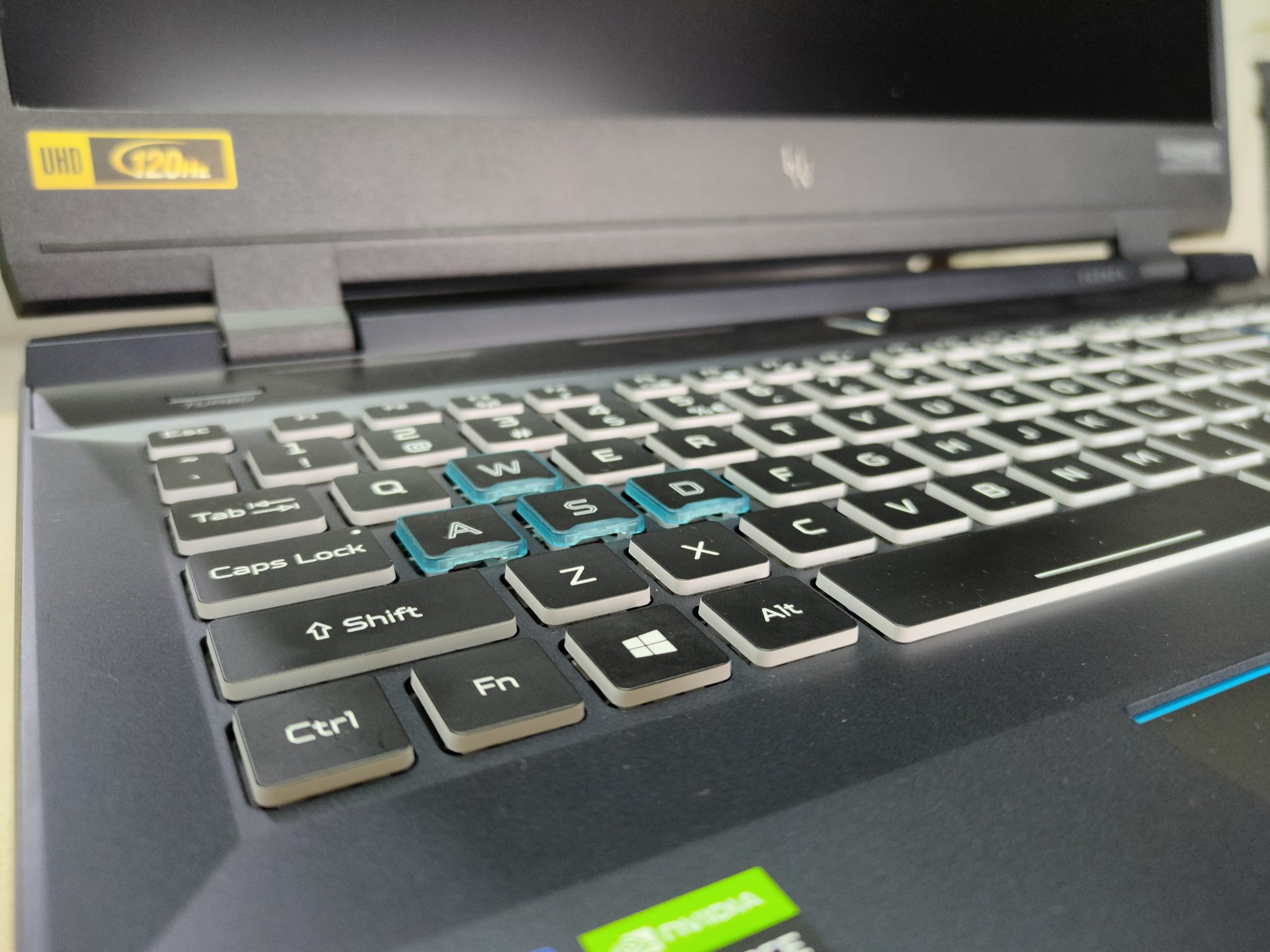 Tastatura este o placere! Taste mari, cursa mai lunga decat la un laptop oarecare de gaming, feedback foarte bun si iluminare deosebita. Este silentioasa, precisa, buna atat la scris cat si la gaming.