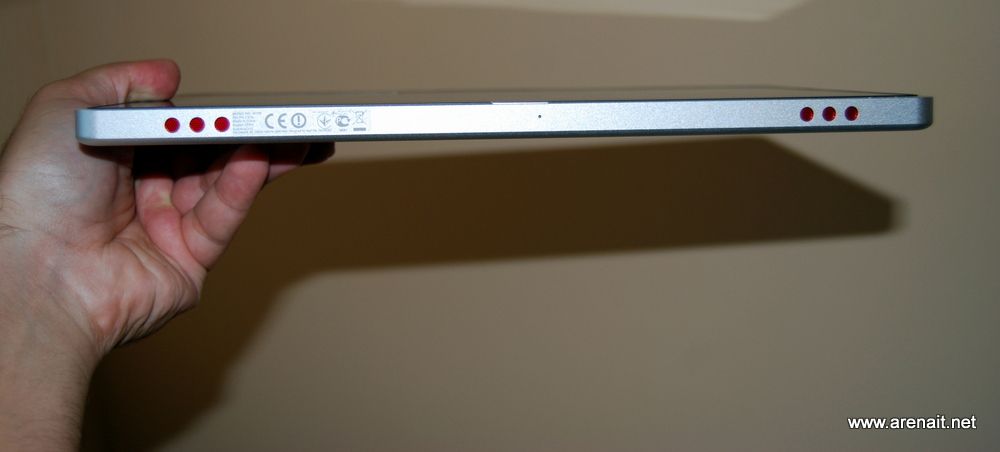 – marginile ecranului sunt destul de mari, iar in partea de jos mai este inca o margine argintie suplimentara unde se afla butonul Windows (ar fi fost de preferat sa fie pozitionat pe marginea neagra pentru reducerea dimensiunilor sau folosirea unui ecran mai mare si micsorarea/eliminarea marginilor