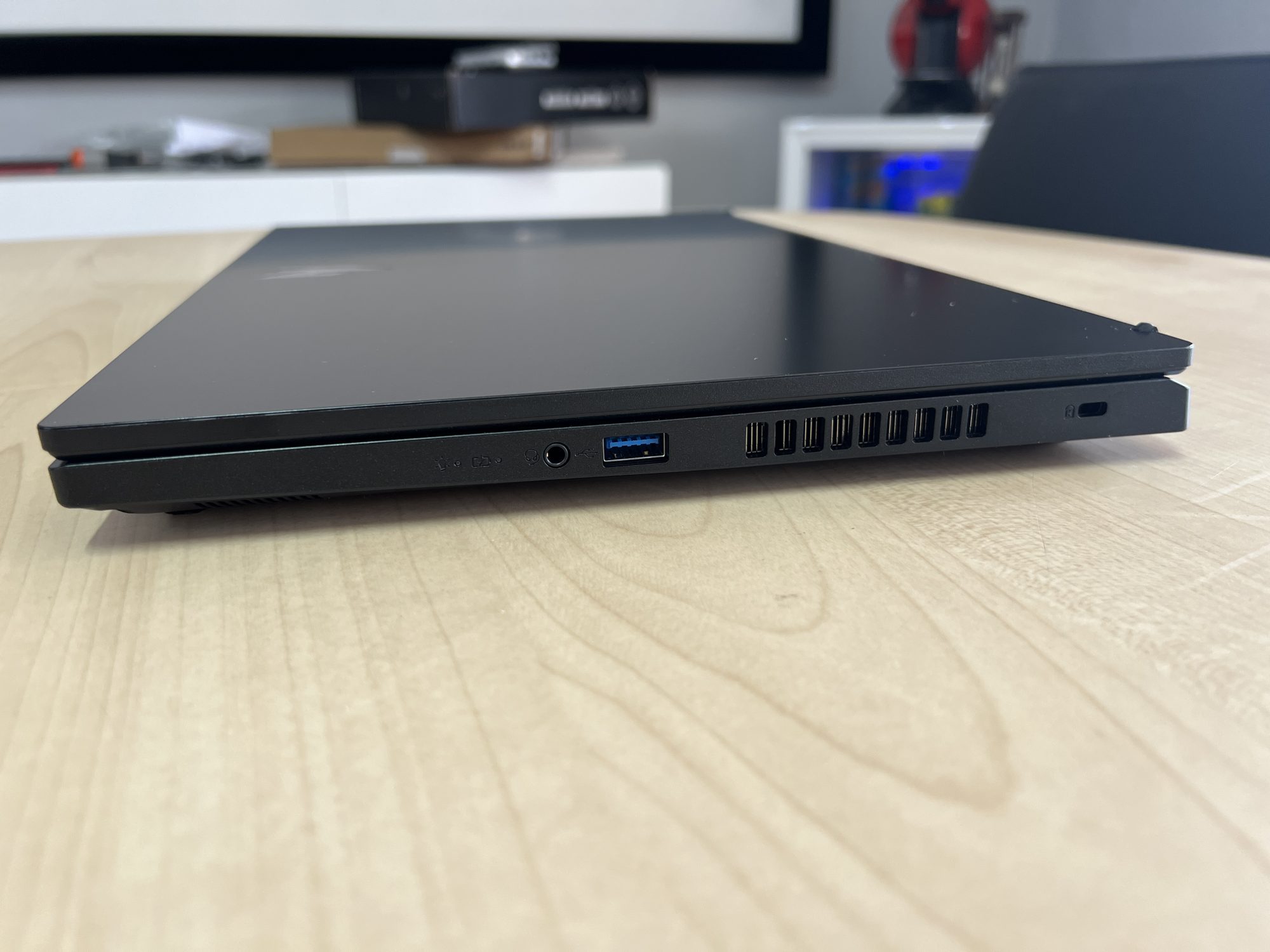 Laptopul este dotat cu multiple opțiuni de conectivitate, inclusiv porturi USB-C, USB-A, HDMI 2.1 și jack audio, oferind flexibilitate în conectarea perifericelor și a accesoriilor. Are inclusiv port LAN, deci te poti mufa direct la internet prin cablu daca iti doresti asta. Fiind un Nitro, porturile sunt toate asezate pe lateral, inclusiv cel de alimentare este pe partea stanga. Nimic nu se afla pe partea din spate in afara de fanta pentru aerisire.