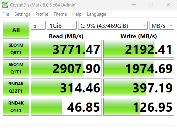 Nu are cel mai rapid SSD, insa este decent pentru a rula jocuri si pentru a incarca rapid Windows-ul. Repet, se poate oricand schimba cu unul de o capacitate mai mare si mai rapid.