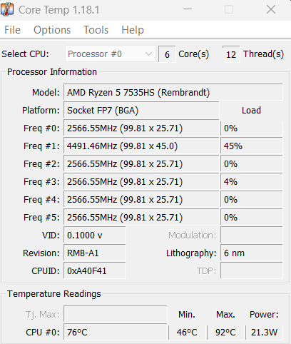 Putere de procesare – AMD Ryzen 5 7535HS