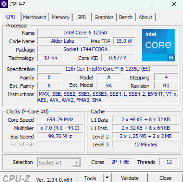 Pe partea hardware ofera un procesor Intel Core din generatia 12, iar in versiunea mea a ajuns cu un i5-1235U, ceea ce inseamna ca este un model cu consum redus de energie si o frecventa ceva mai mica. Totusi, are 12 nuclee si 12 thread-uri si este tactat la 2.5GHz. Nu este rau deloc, ba chiar se comporta bine in task-uri normale, simple, si sunt convins ca intr-o utilizare mai avansata o sa faca fata cu brio. Acest laptop trebuie sa se descurce foarte bine in task-urile de tip office, nu la randari video, jocuri sau animatie.