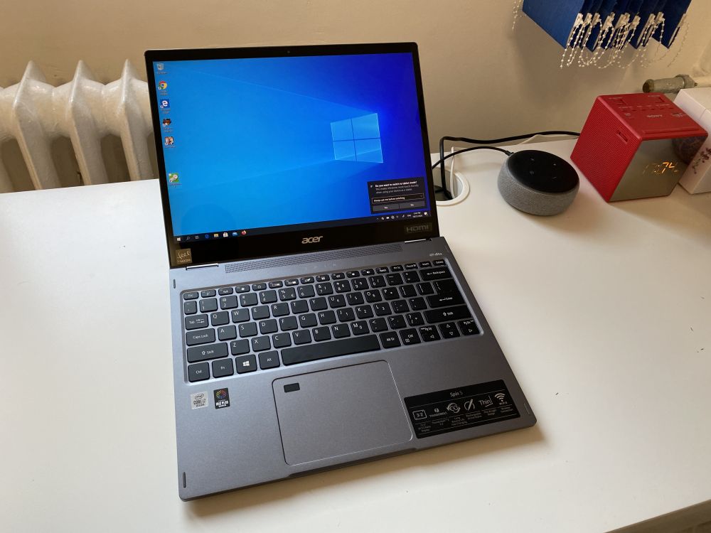 Acer Spin 5 este un laptop in toata firea care la nevoie iti ofera posibilitatea sa-l transformi intr-o tableta. Consider ca in aceste vremuri cand majoritatea dintre noi lucram de acasa, un astfel de laptop este ideal pentru a putea face mai multe sarcini.