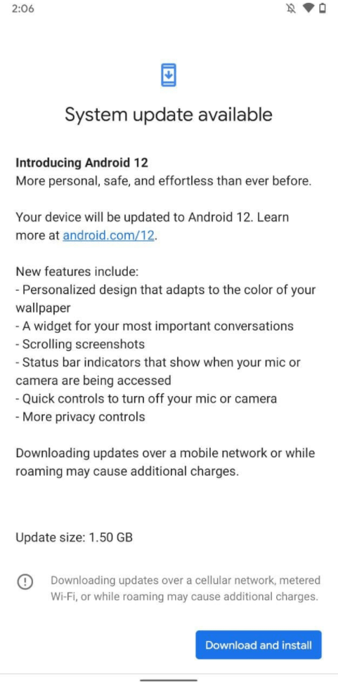 Android 12 este considerat un upgrade major, aducând numeroase schimbări de interfață prin Material You, o funcție avansată de personalizare a temelor vizuale, dar și îmbunătățiri pentru securitate și protecția datelor. Momentan, doar telefoanele Google Pixel au disponibilă actualizarea la Android 12.