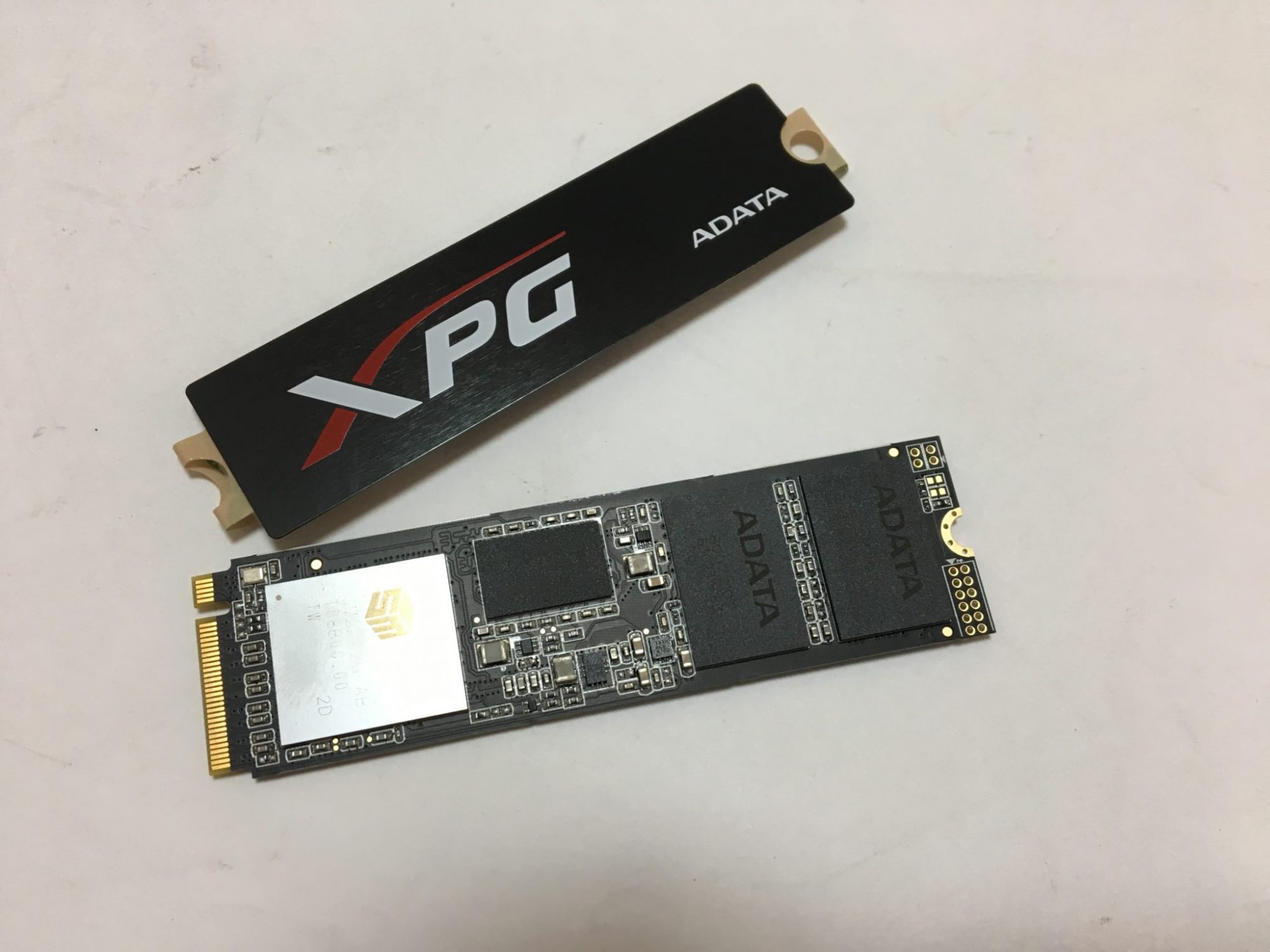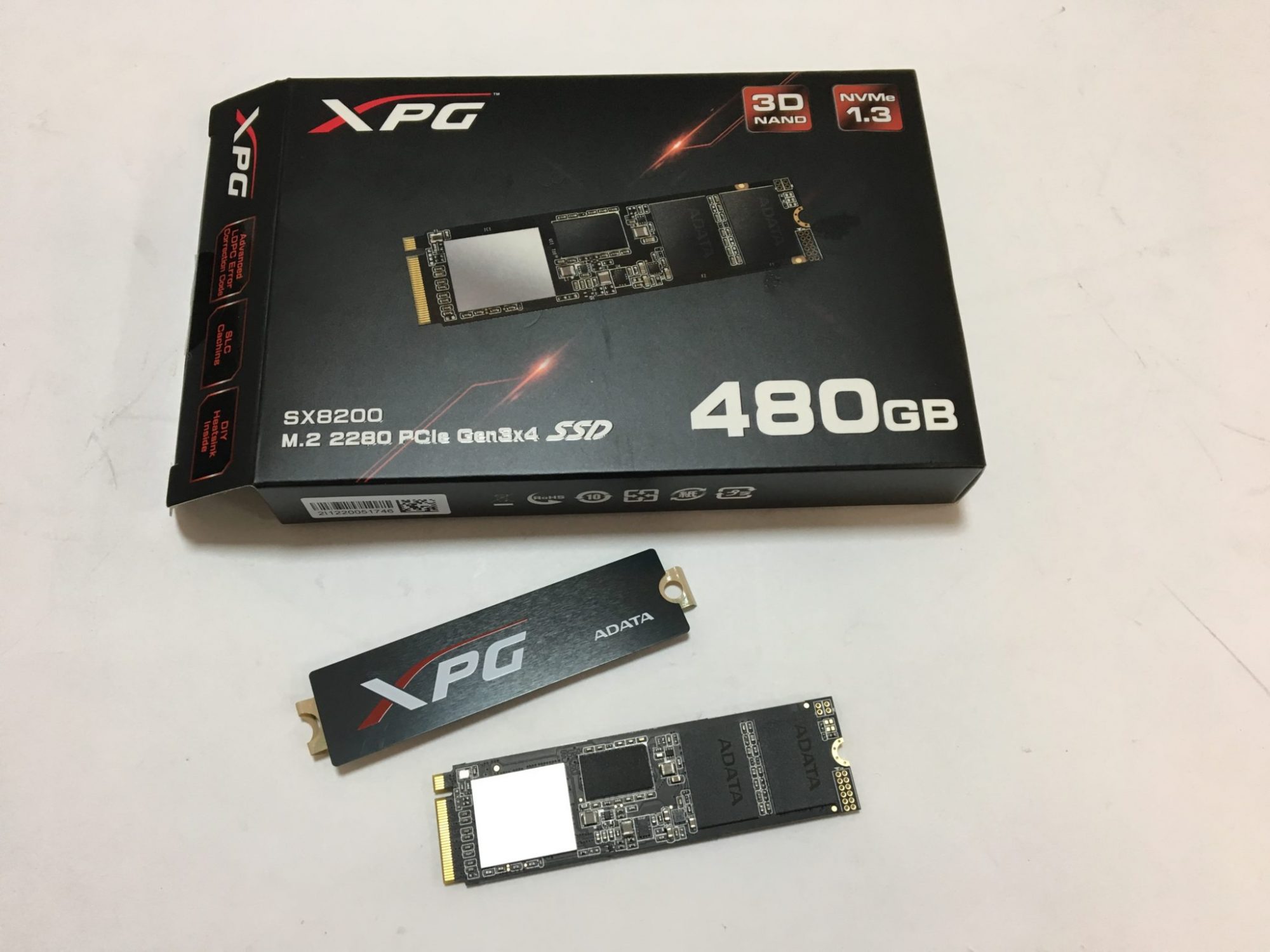 SSD-ul de fata este cu interfata PCIe Gen3x4, cu memorie 3D Nand si NVMe 1.3. Deci nu-i de joaca cu el (sau este?). La pachet vine intr-o cutie neagra si cu un radiator optional cu logoul XPG ADATA.