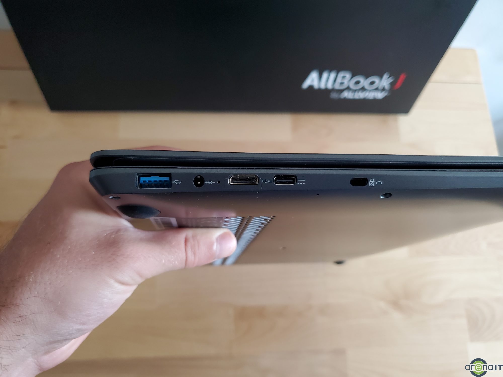 In materie de porturi, avem un mini HDMI, un port USB 3.0, un port USB 2.0, port RJ45 pentru retea, un USB tip C si un port de jack de 3.5mm.