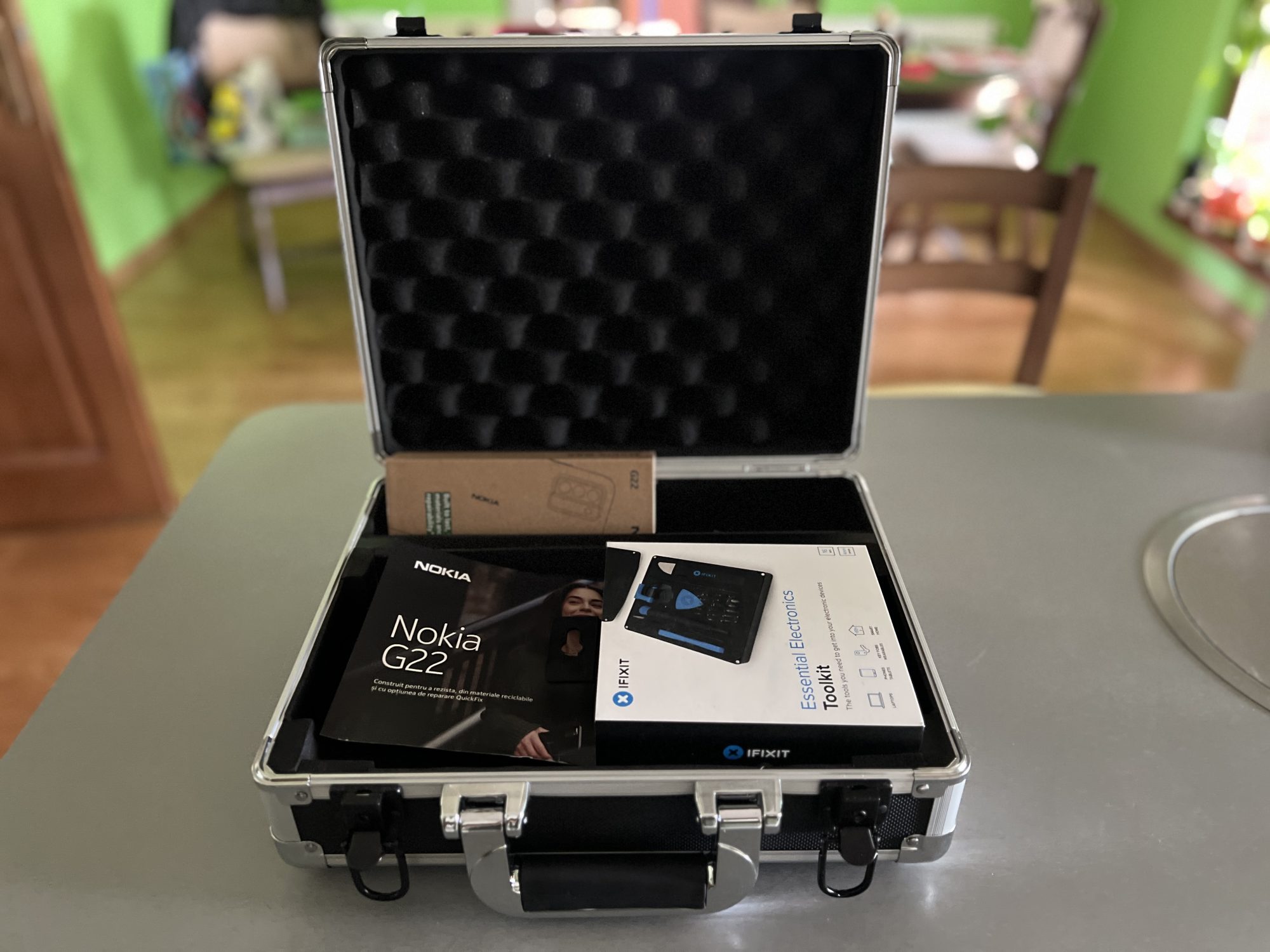 Practic, poți înlocui singur bateria și ecranul, datorită opțiunii de reparare încorporate QuickFix. Poți astfel uita timpul de așteptare îndelungat la magazinele de reparații sau de potențialele pierderi de date. Bine, nu e chiar așa de simplu, că ai de consultat iFixit pentru piese de rezervă pentru telefoane Nokia, instrumente sau instrucțiuni ușor de urmat sau poți apela la un centru de service autorizat care să-ți repare dispozitivul. Iată și explicația pentru care am primit și kit-ul de reparație 🙂