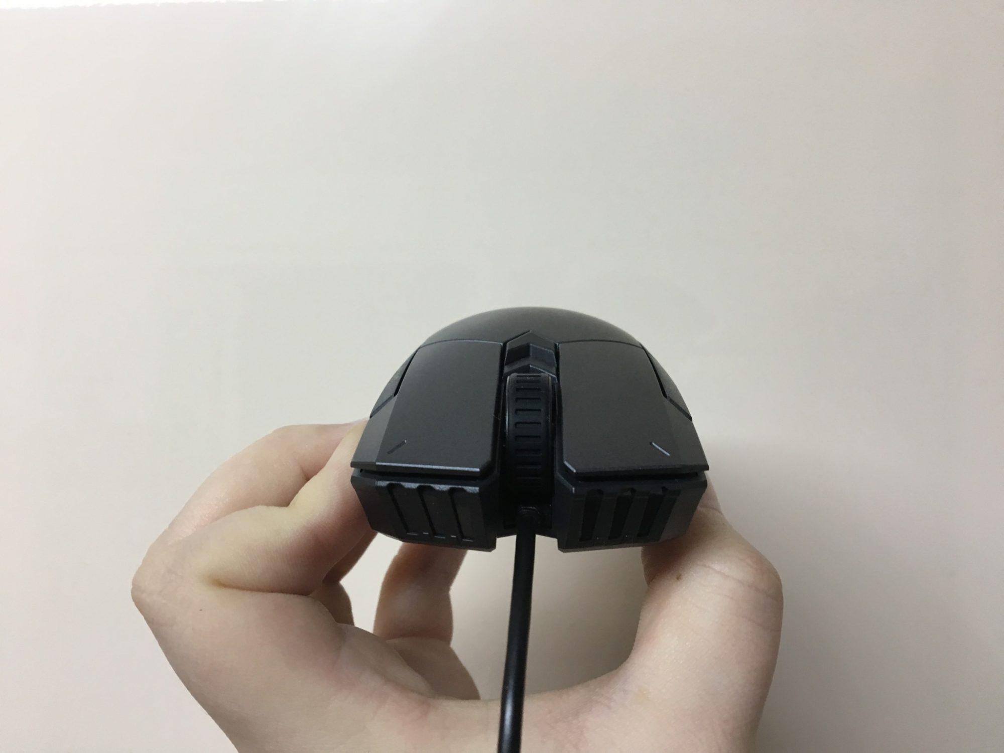 Dispune de iluminare AURA Sync si are inclusiv memorie interna pentru 3 profile personalizate. Pe laterale are un material caucicat pentru aderenta, iar butoanele de back si forward sunt amplasate putin ciudat. Nu sunt chiar pe lateral ci mai mult pe muchie. O sa te obisnuiesti cu ele in timp.