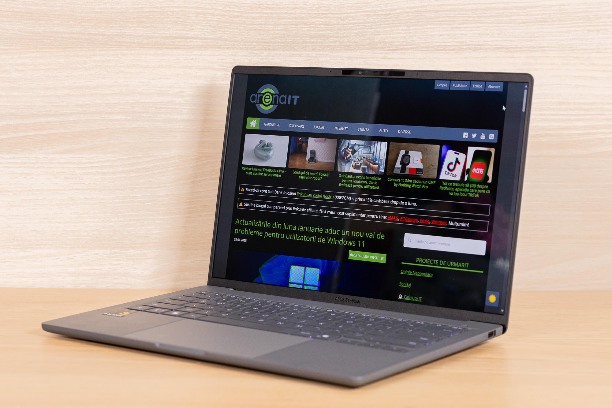 Una dintre cele mai mari surprize ale acestui model este bateria impresionantă. ASUS promite o autonomie de până la 32 de ore, iar cu o baterie de 70Wh, poți ajunge chiar la două zile de utilizare dacă nu folosești intensiv aplicații solicitante. Practic, ai autonomia unui telefon performant.