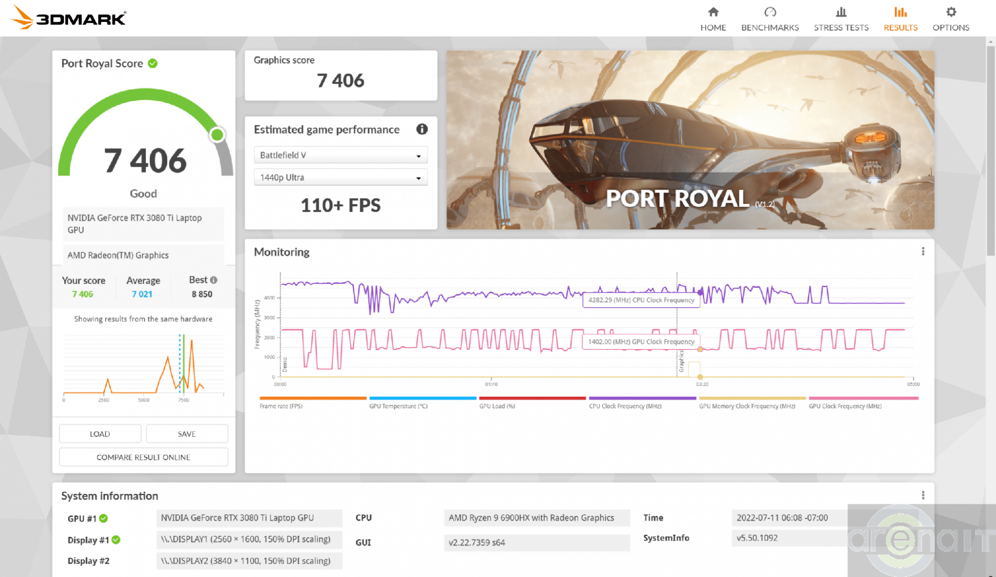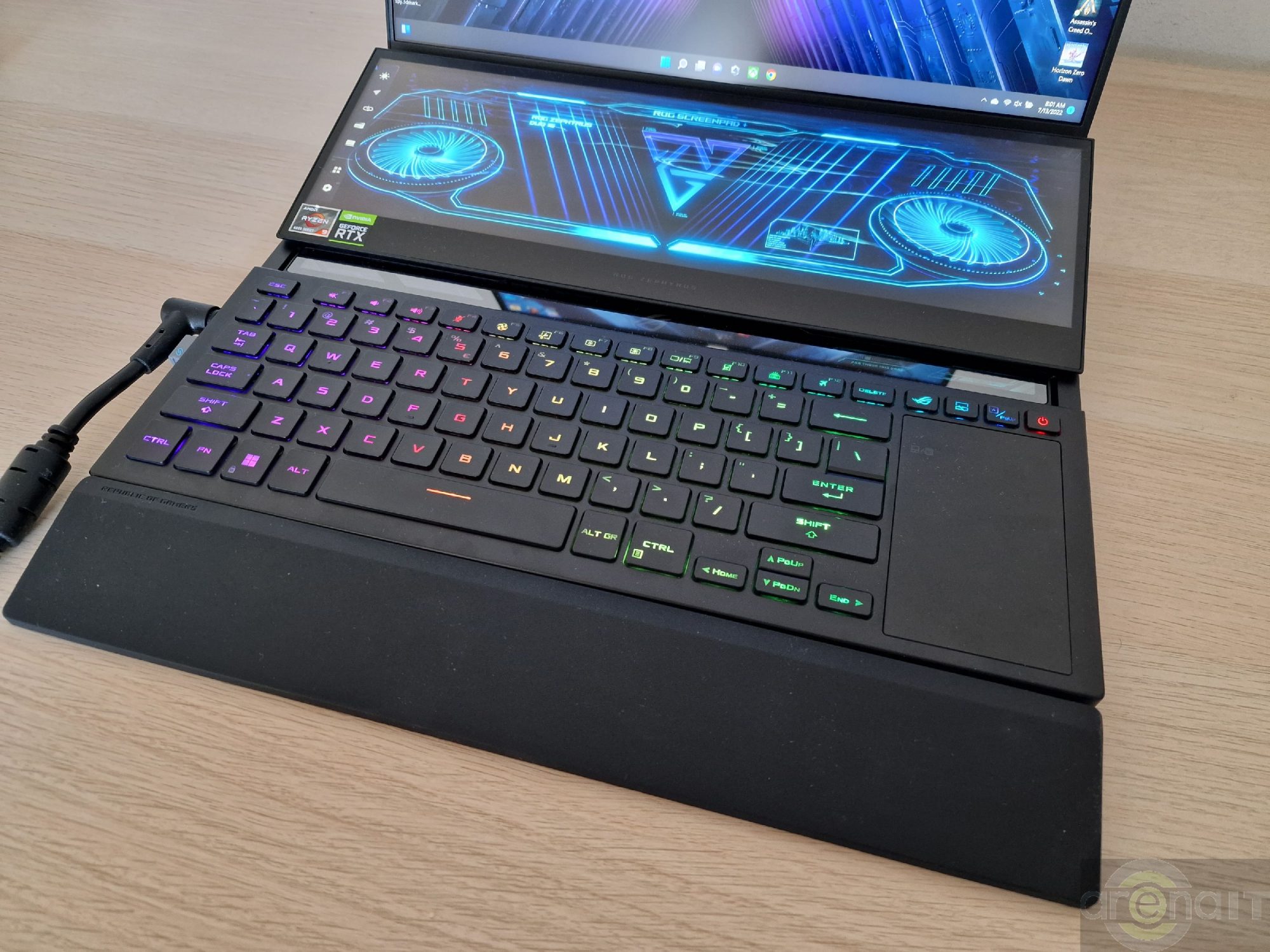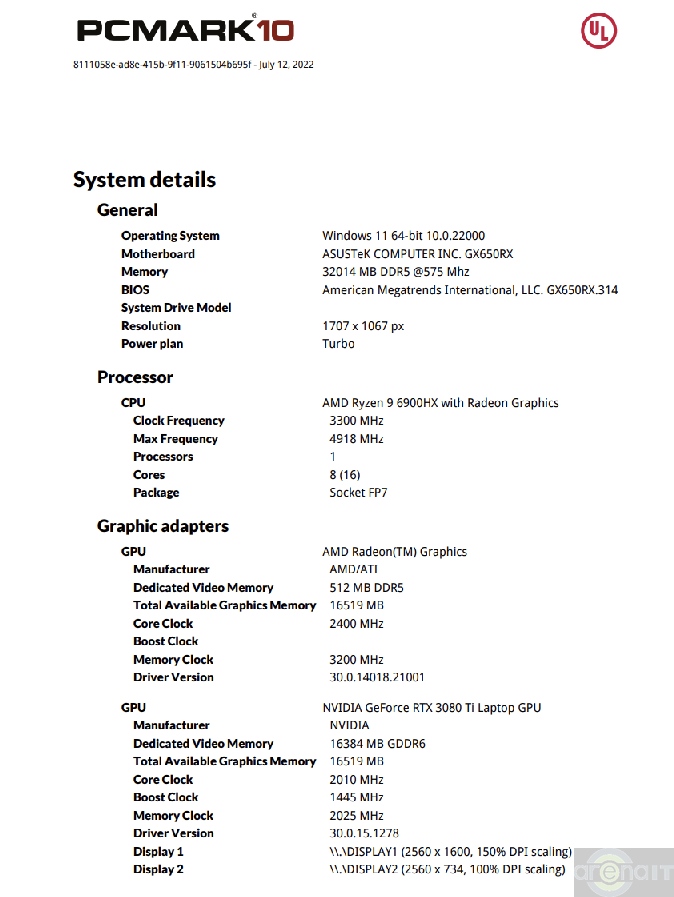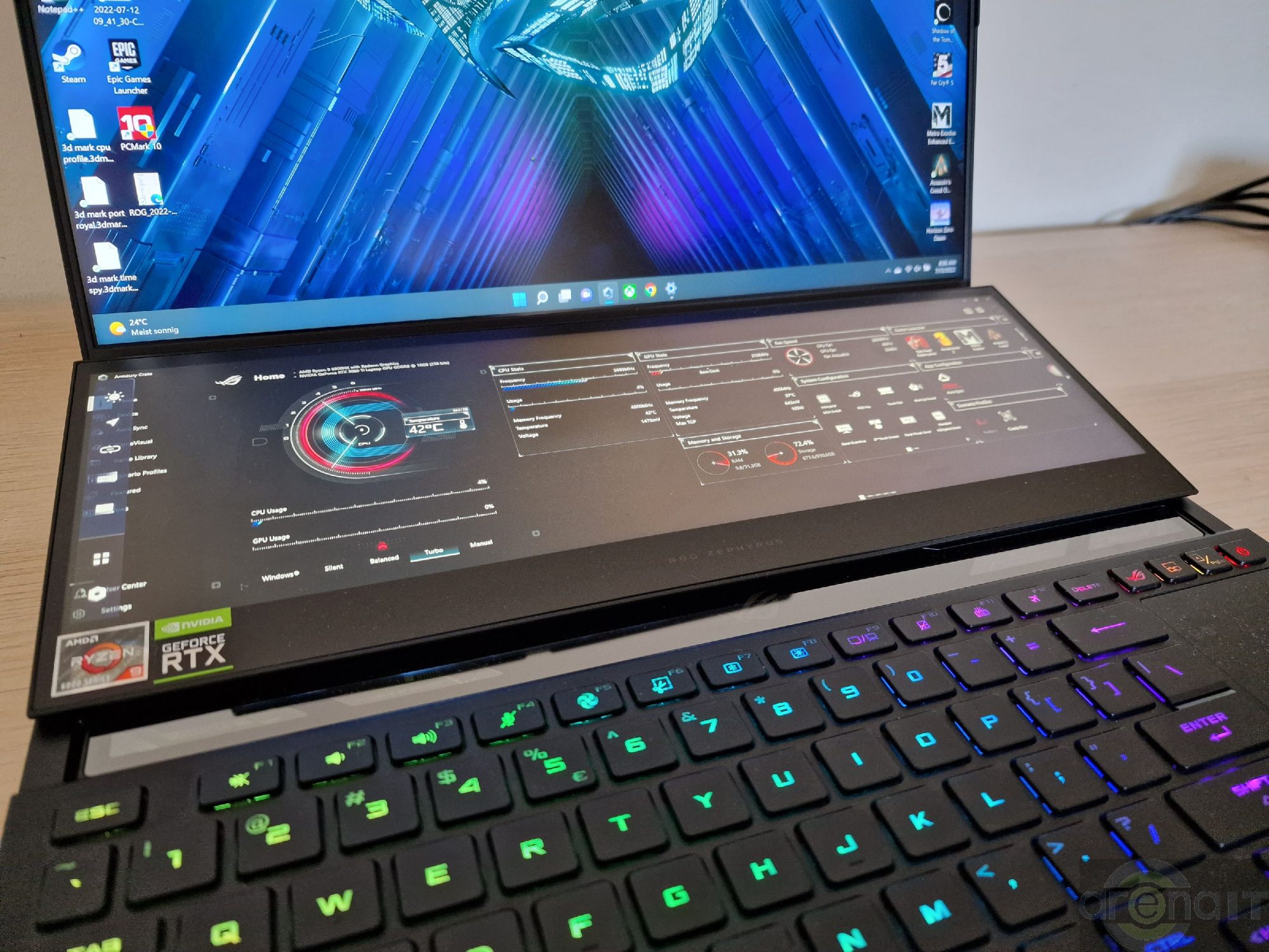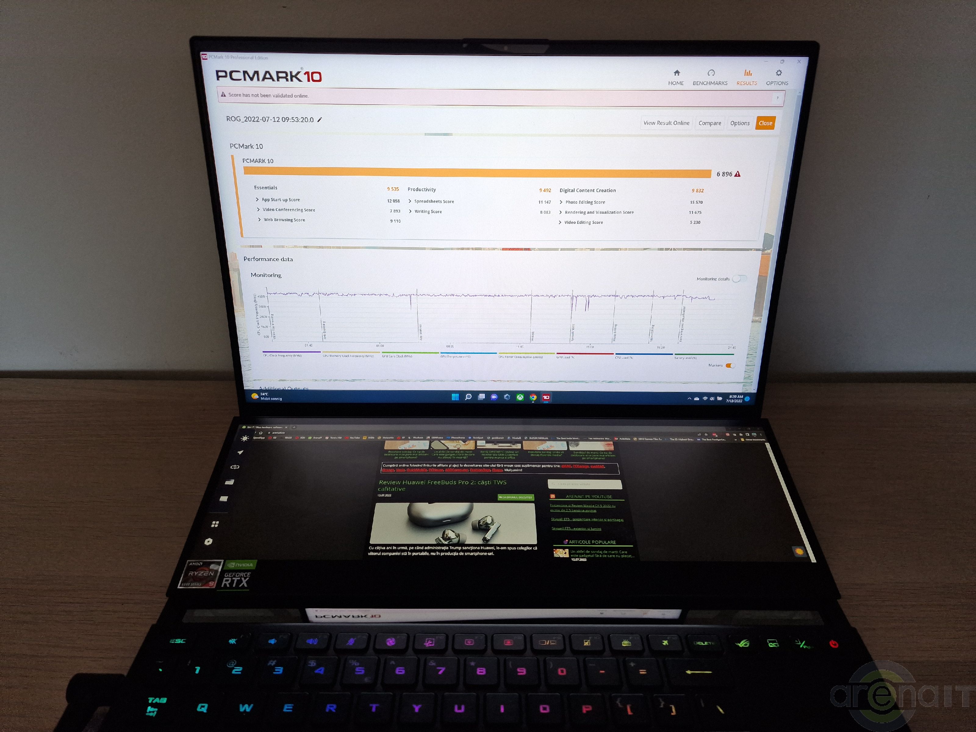 Testele arata ca nivelul de putere al acestui laptop este in zona unui desktop echipat cu un procesor Ryzen 7 5700X si un GeForce RTX 3070, ceea ce eu unul consider impresionant avand in vedere dimensiunile laptopului.