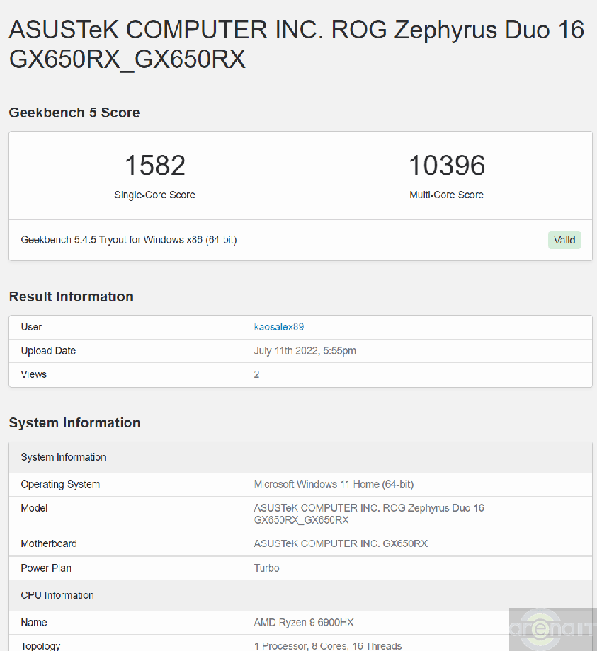 | CPU | AMD Ryzen 9 6900HX 8 cores 16 threads |