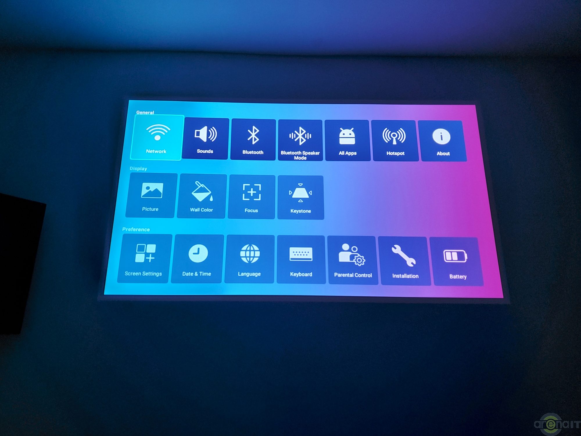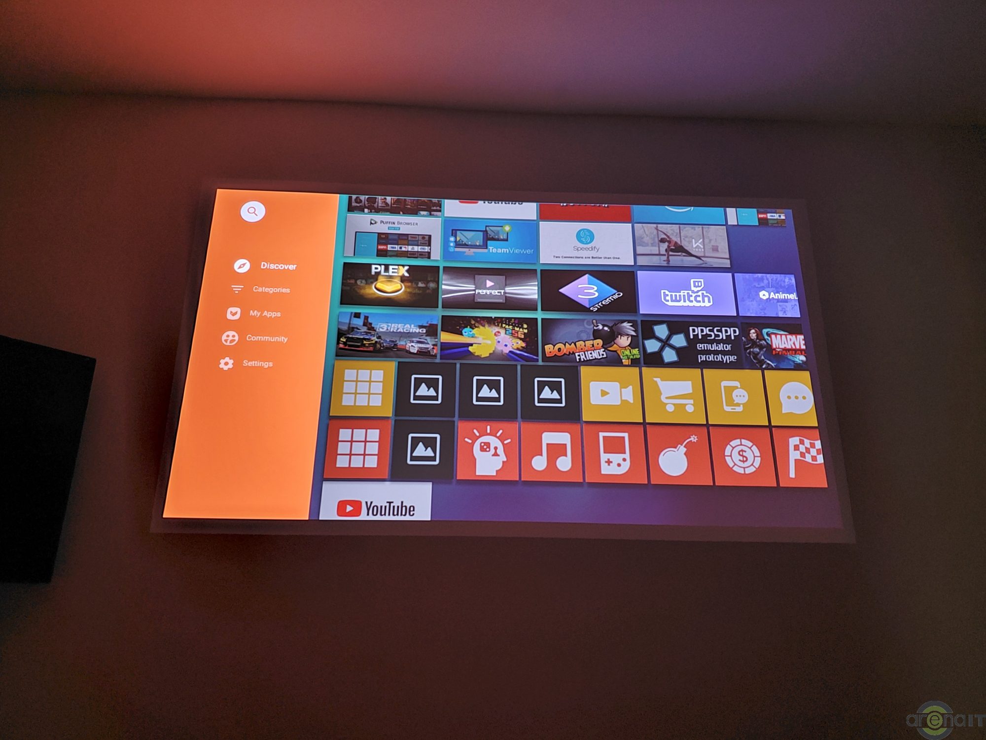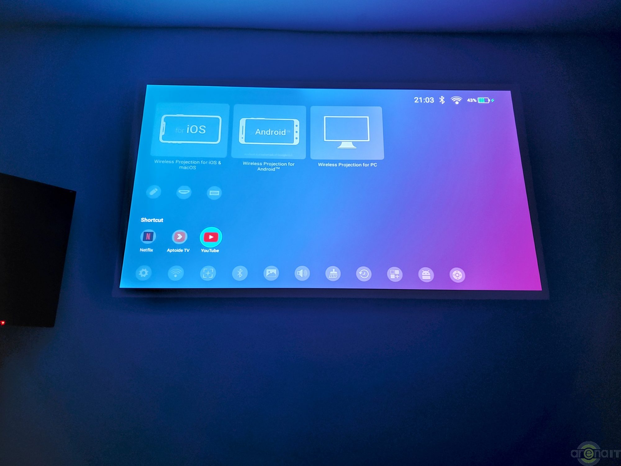 Sistemul de operare folosit este Android 6.0 si este puternic modificat, iar interfata foarte prietenoasa si usor de folosit, cu optiuni de personalizare in functie de preferinte. Nu avem Google Play Store dar avem magazinul AptoideTV de unde se pot descarca aplicatii precum YouTube, Netflix,Twitch, Vimeo, Amazon Prime Video si altele. Sistemul este actualizat la zi si nu stiu sa va spun de ce nu se foloseste o versiune mai recenta de Android, probabil va primi actualizari. Parintii probabil vor fi incantati sa afle despre controlul parental, care le permite sa contorizeze timpul petrecut de copii „in fata” proiectorului.