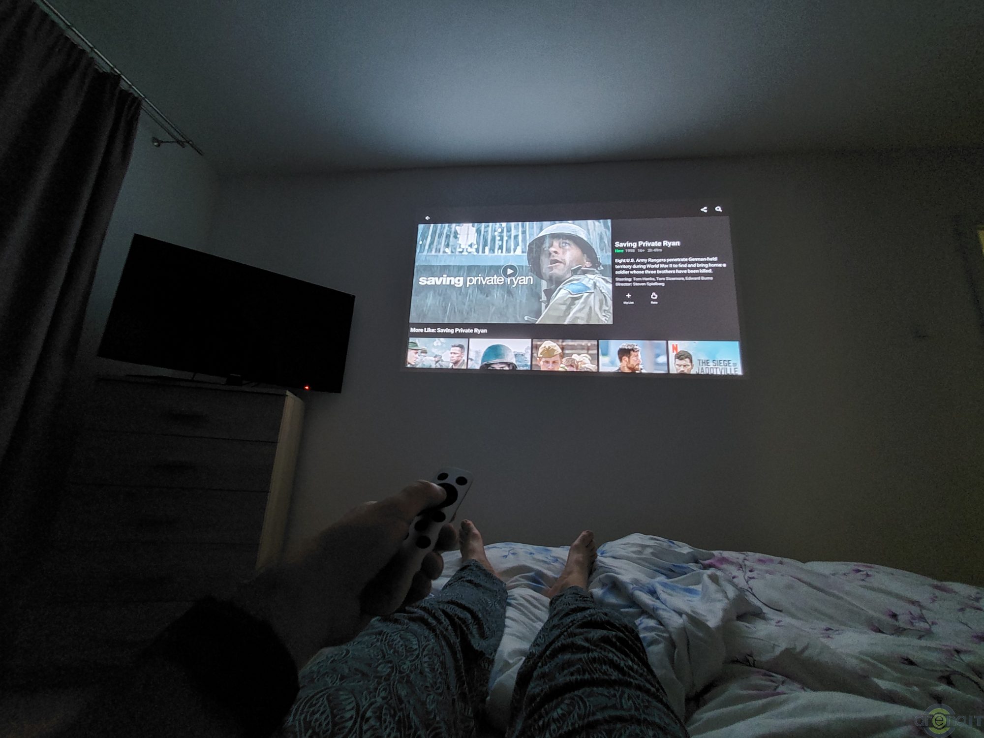GS2 are cam tot ce iti poti dori de la un proiector. Eu l-am folosit in dormitor si veti vedea in incapere si un TV de 1m. Din proiectia raportata la camera mi-a iesit un „ecran” cu o diagonala mult mai mare cu o claritate foarte buna pentru a urmari continut din pat.