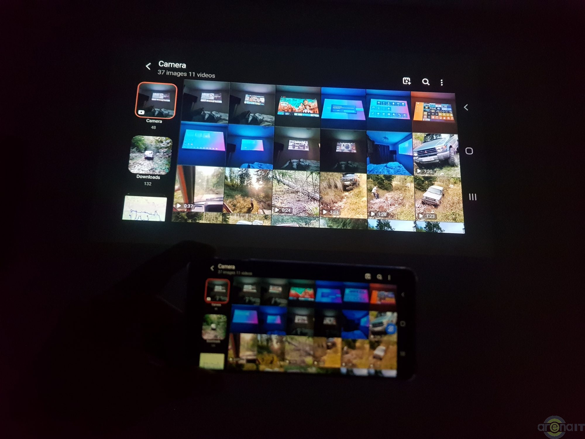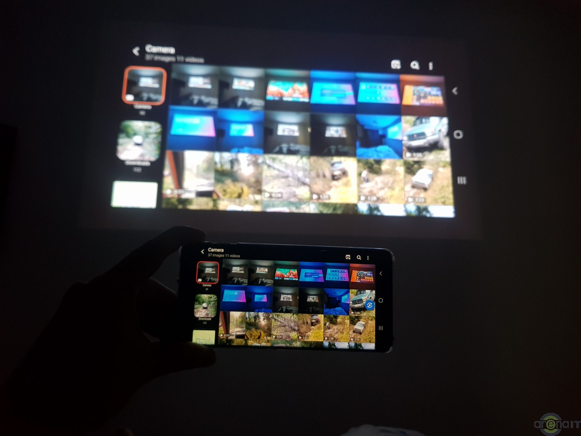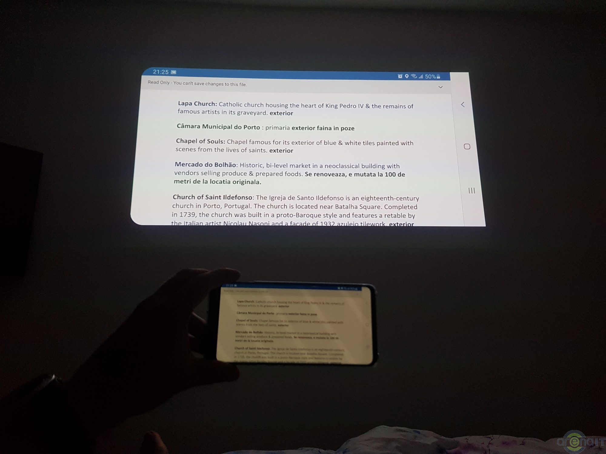 Prin SmartView am conectat wireless telefonul la proiector, iar continutul de pe telefon era proiectat pe perete.