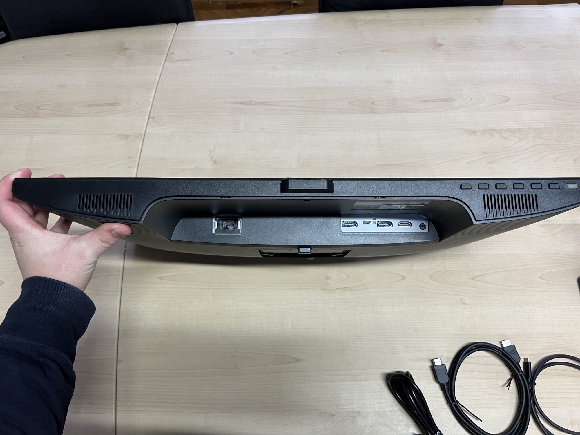 Pe partea de conectivitate iti ofera: 1x HDMI, 1x DP 1.2, iesire DP MST, USB C cu putere de iesire 60W sau cu functie de DP/date. Tot aici vreau sa mentionez si difuzoarele de 2x2W fiecare.