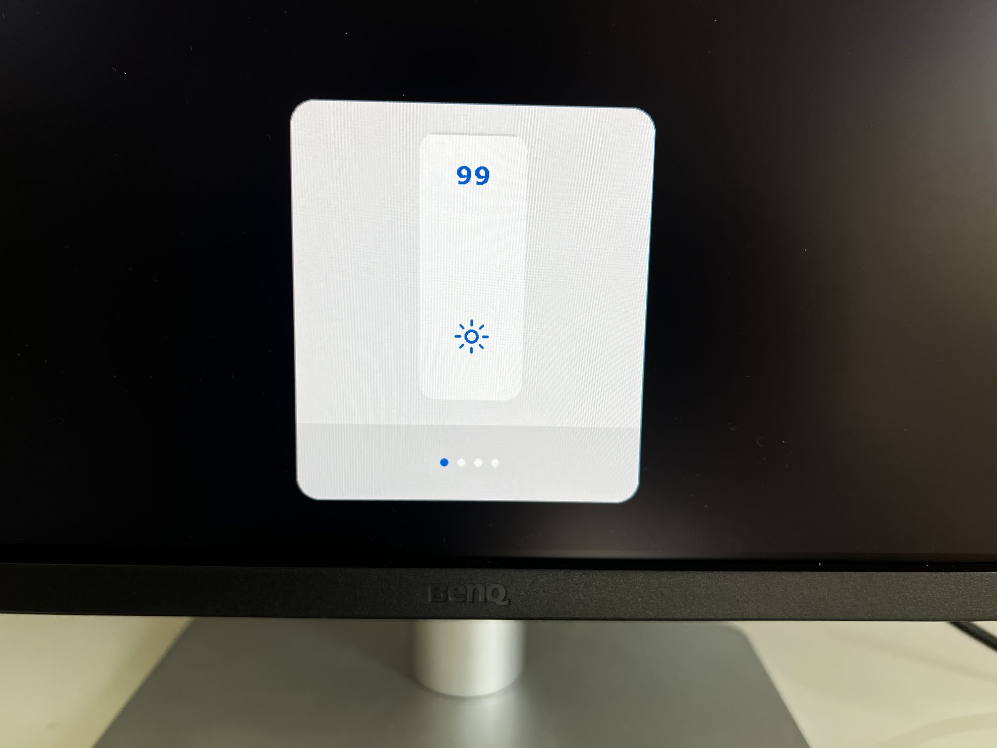 Am rămas surprins de culorile foarte bune ale monitorului și de luminozitatea ridicată chiar și într-o camera cu ferestre mari. De obicei monitoarele care au acel strat mat au o luminozitate o idee mai slabă, dar acest model BenQ s-a descurcat excelent. În plus, culorile pot fi perfect sincronizate sau aliniate cu cele ale ecrnaului de la MacBook prin aplicatia BenQ Display Pilot. Asta este o veste bună, că nu mai trebuie să-l setezi folosind butoanele amplasate în spate. Utilizatorii de Mac sunt mai pretețioși, iar BenQ știe treaba asta.