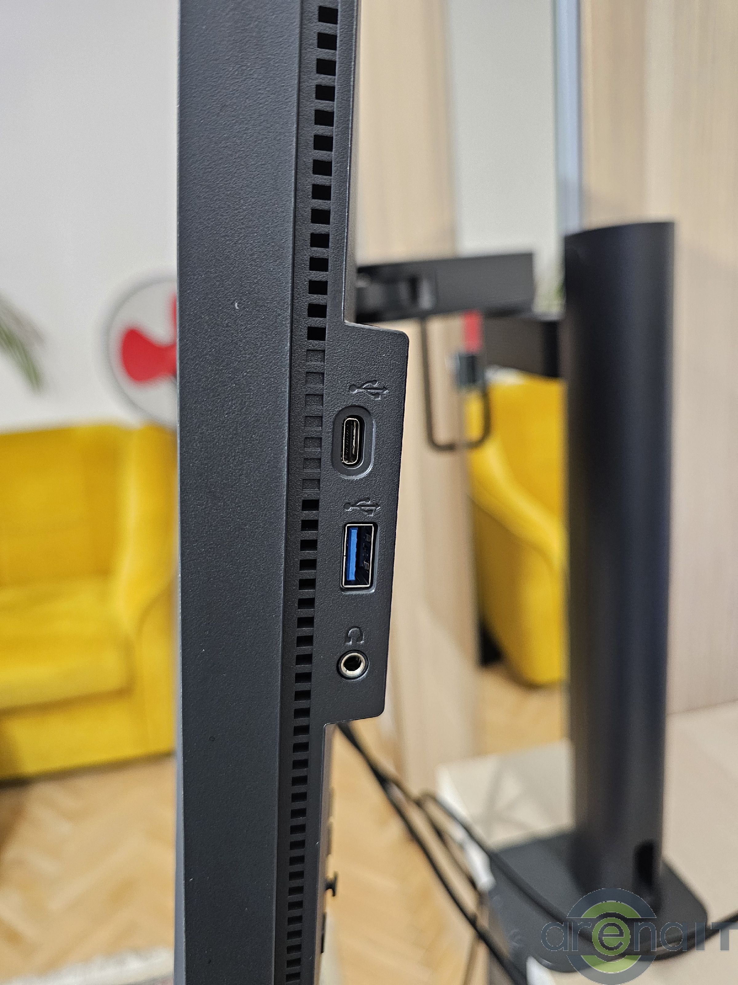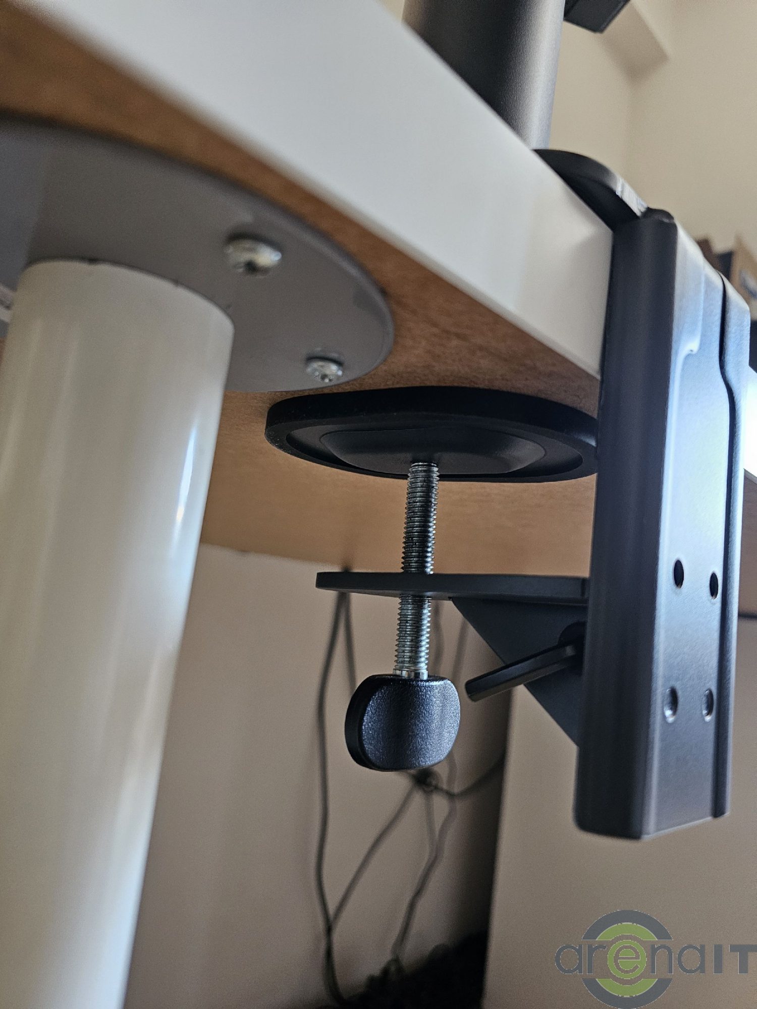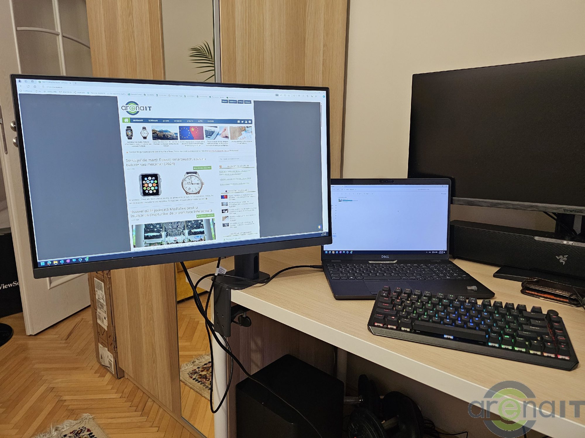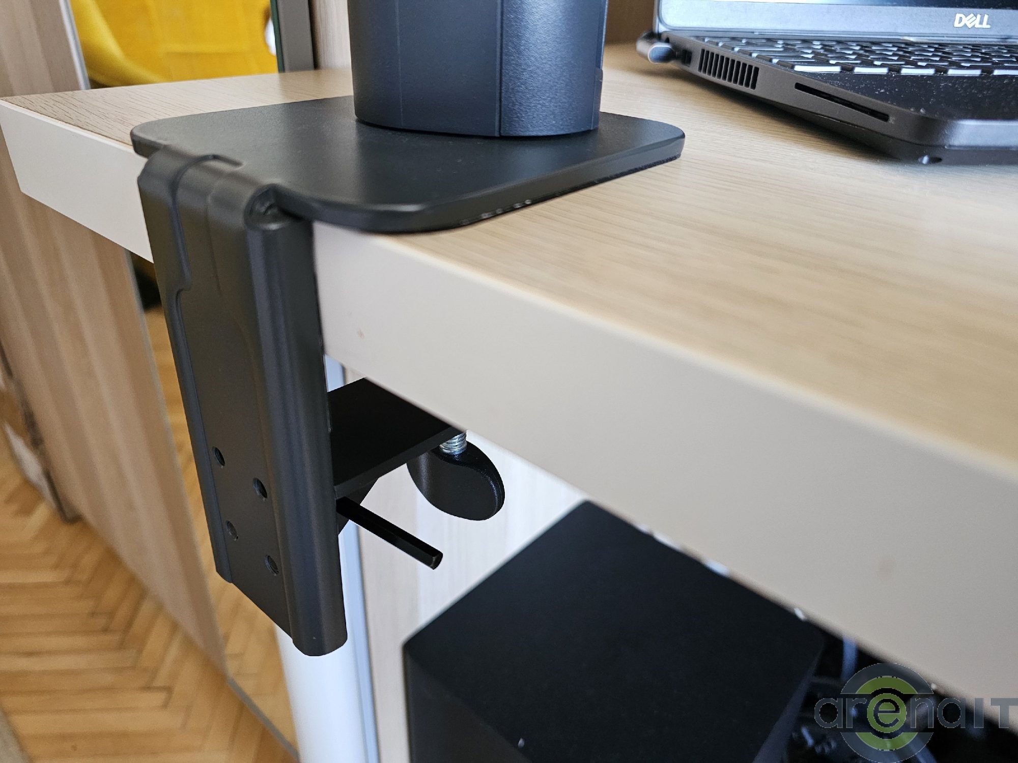 In primul rand acesta se face remarcat prin bratul ergonomic si personalizabil fara limite. Ofera posibilitati multiple de a fi utilizat si se poate regla pe toate unghiurile, inclinatiile sau inaltimea dorita. Singurul aspect care il poate limita este lungimea cablului de alimentare sau pozitionarea prizei, dar si asta se poate rezolva usor cu un prelungitor. Revenind la brat, acesta se fixeaza precis pe birou, ofera o stabilitate perfecta si ocupa un loc minim. In cel mai productiv scenariu, eu l-as vedea montat pe un birou central, unde cu usurinta poate fi conectat la acesta prin intermediul portului USB tip C cu power delivery un laptop sau un telefon Samsung cu DeX.