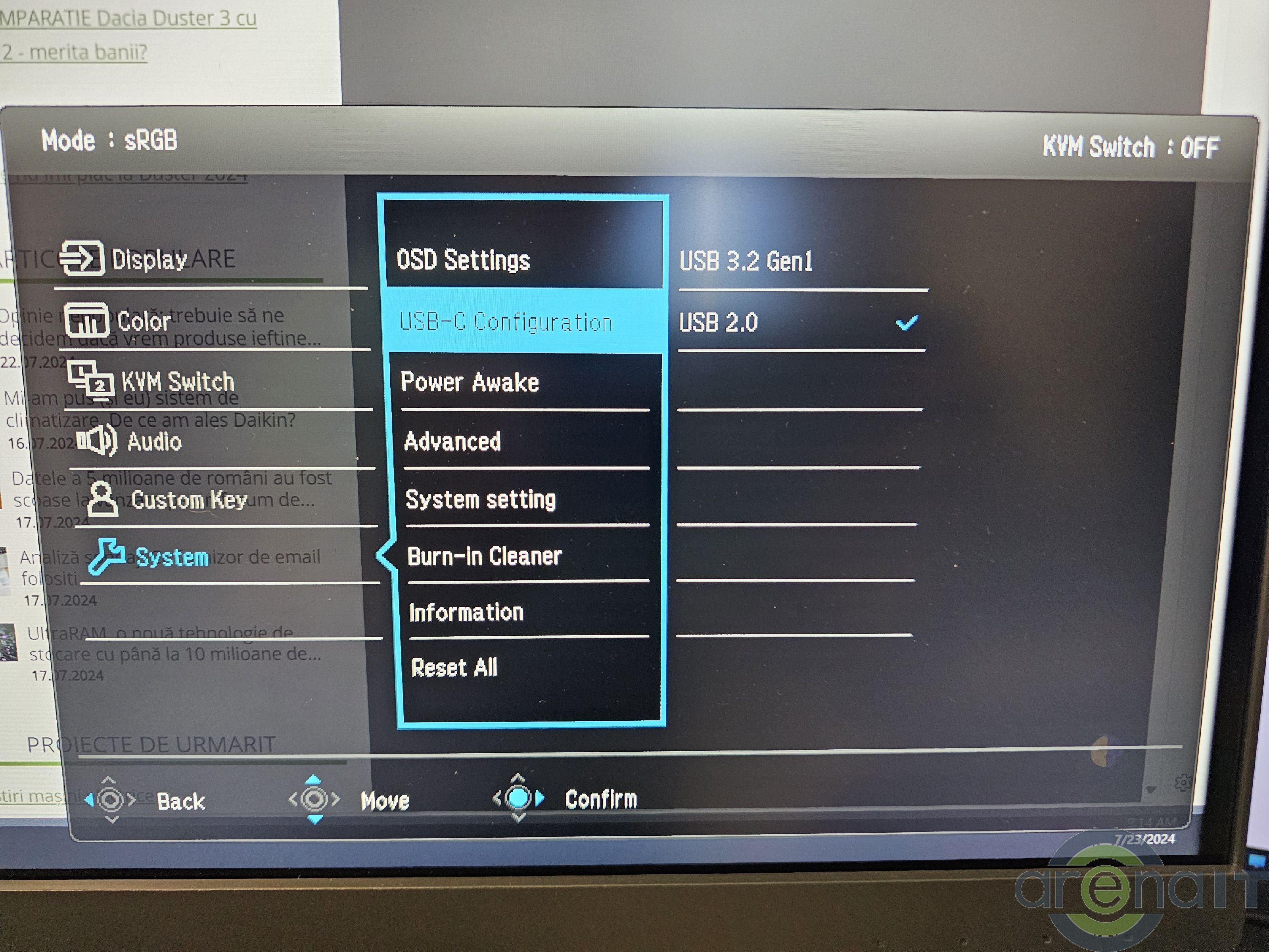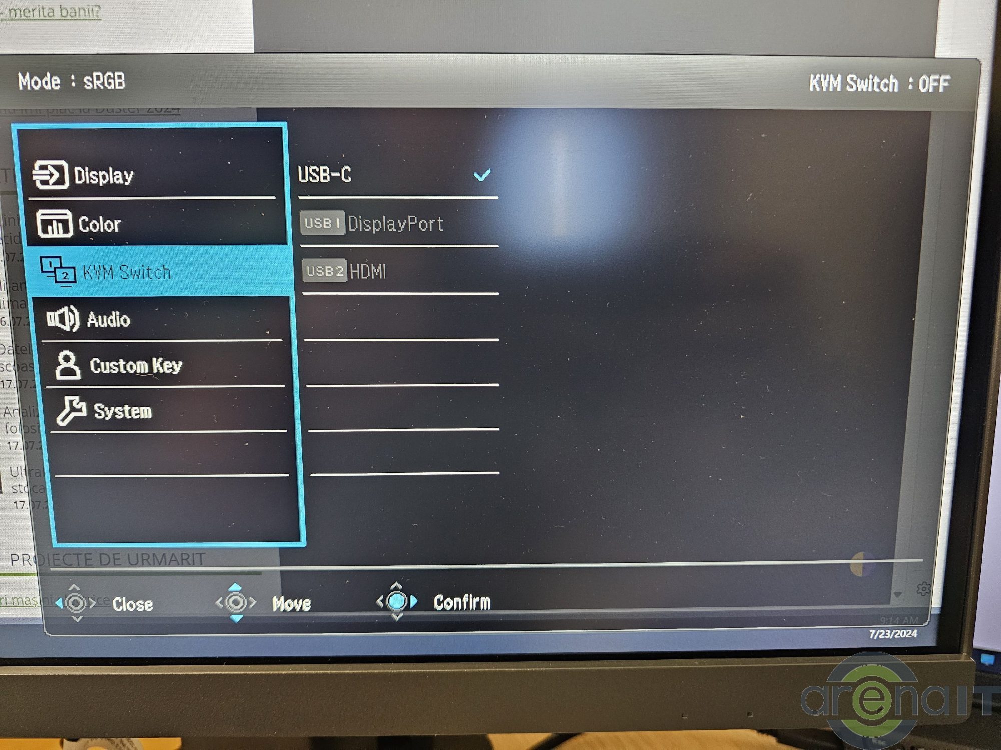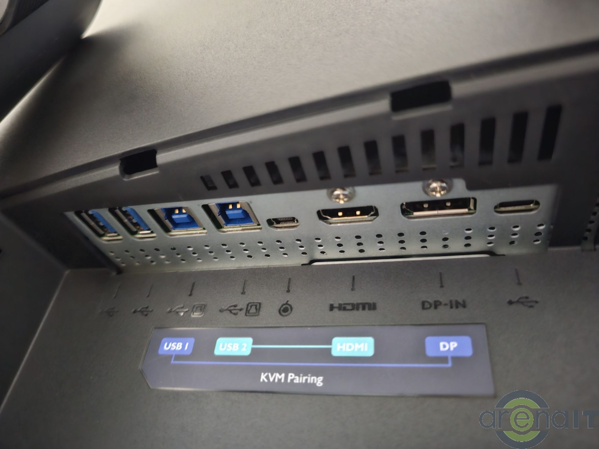 La capitolul porturi sta bine cu 1 port HDMI 2.0, un DisplayPort 1.4, USB tip C cu Power Delivery 65W, USB 3.2 si USB tip C. La bord este prezenta tehnologia KVM care permite utilizarea unui singur rand de periferice, in momentul in care sursa de imagine a monitorului este schimbata, perifericele se vor conecta automat la noul sistem. Tehnologia M-Book, care permite calibrarea automata si salvarea profilelor de culori dintre monitor si dispozitive Apple este de asemenea prezenta.