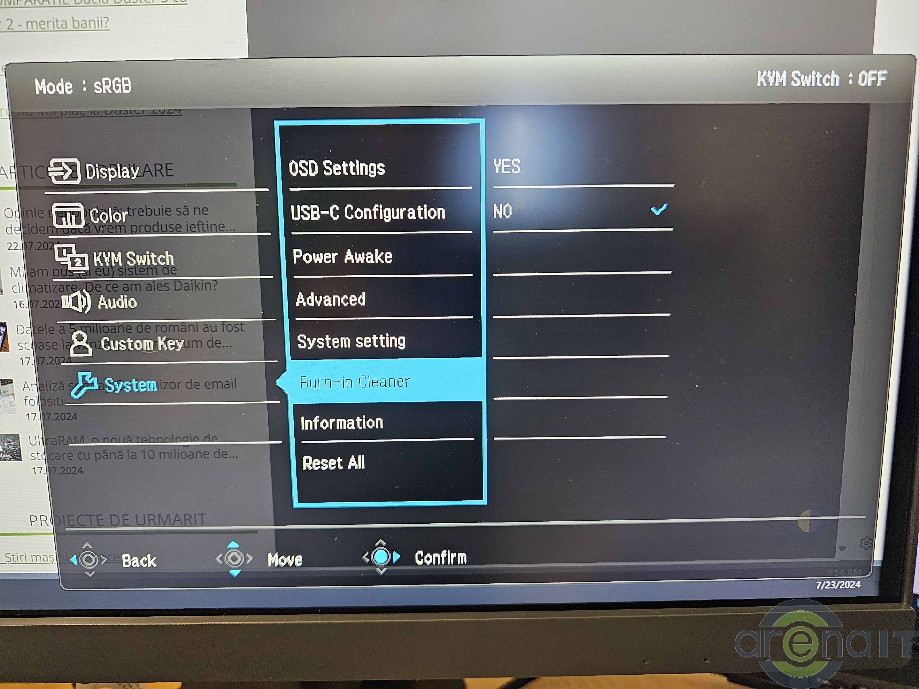 Pentru meniul OSD BenQ a pastrat interfata cunoscuta si usor de folosit de unde se pot regla parametrii imaginii monitorului.