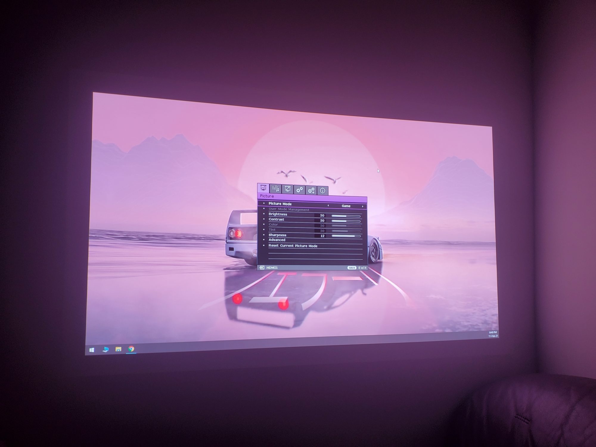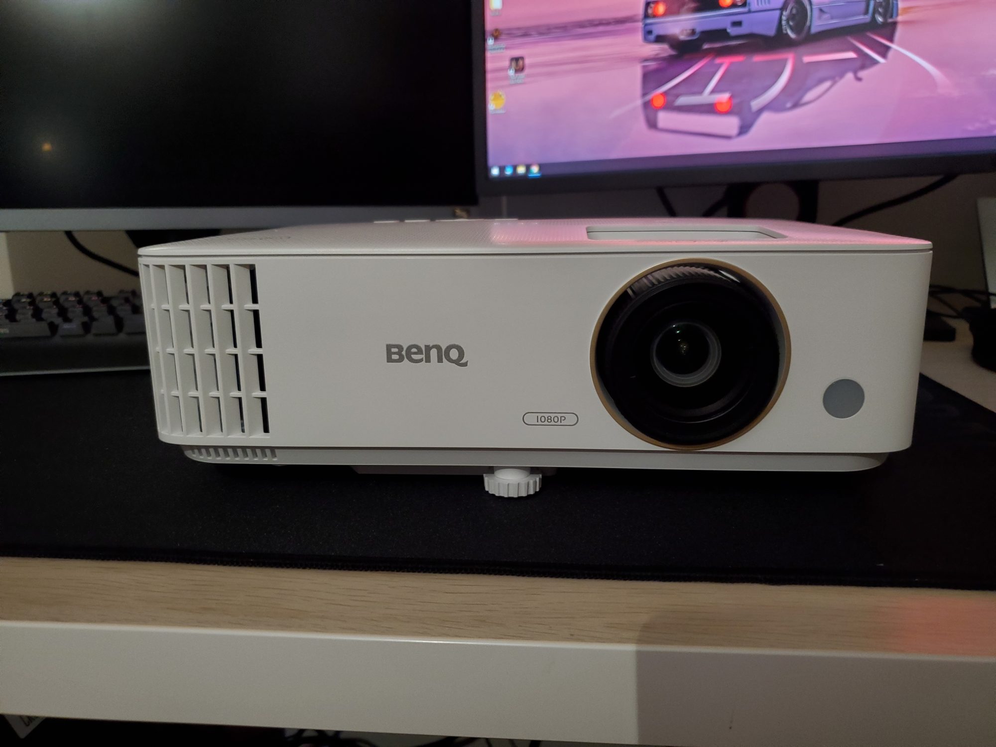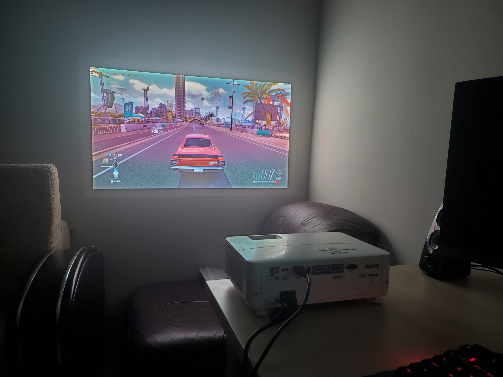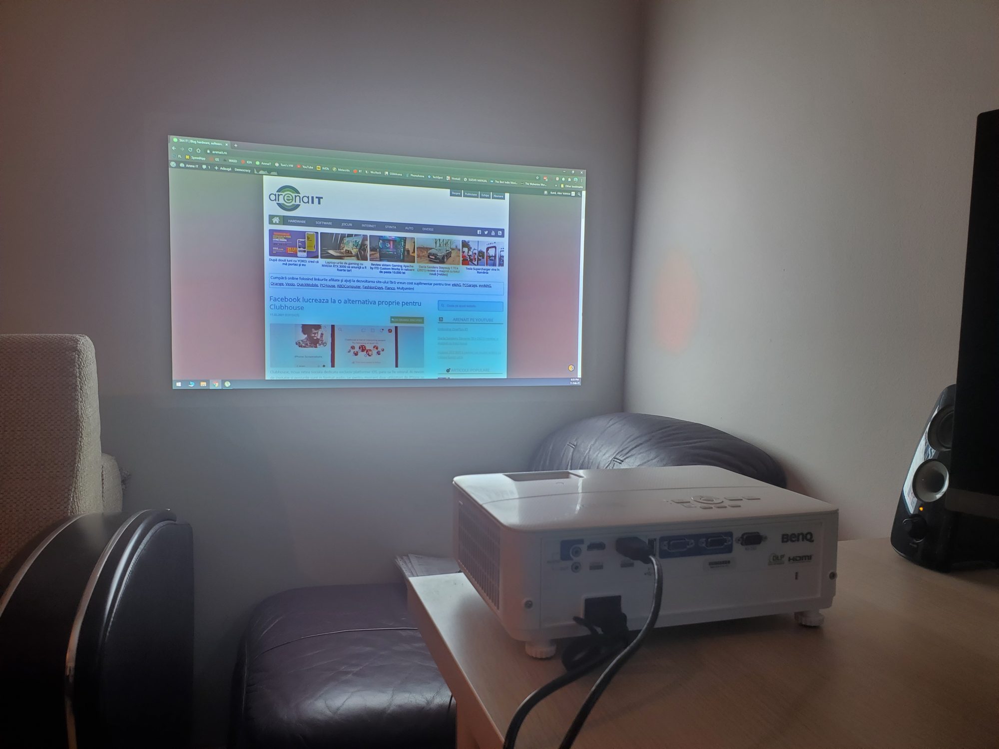 Fiind un proiector de gaming, primul lucru pe care am vrut sa-l fac a fost bineinteles sa ma joc. Am asezat proiectorul frumos pe birou si l-am orientat cu fata spre perete, l-am conectat la PC si am ales modul gaming. Este usor de configurat, iar cateva minute mai tarziu eram in Forza Horizon. Dupa o singura cursa mi-am dat seama ca input lag-ul este prea mare pentru a ma putea juca linistit. Nu m-am oprit aici insa si am incercat Doom Eternal – un titlu care necesita un timp de raspuns foarte bun pentru a putea tine pasul cu actiunea nebuna. Nu l-am putut juca datorita input lag-ului. Acum recunosc ca asteptarile mele erau imense si ma asteptam sa fie la fel de fluid ca pe un monitor de 144Hz. Mi-am coborat asteptarile si m-am mutat spre niste titluri mai casual – Firewatch si Cloudpunk. Acestea au putut fi jucate, dar lag-ul nu a disparut complet.