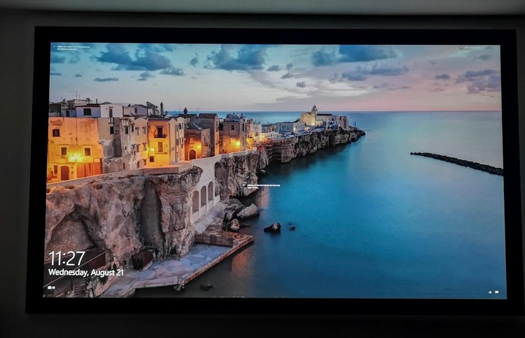 Personal nu sunt un utilizator de proiector. Nu am suficient spatiu incat sa tin unul foarte mult timp si nici macar unul short throw nu prea m-ar ajuta. Insa pot sa va descriu cele intamplate cand a fost pus in functiune.