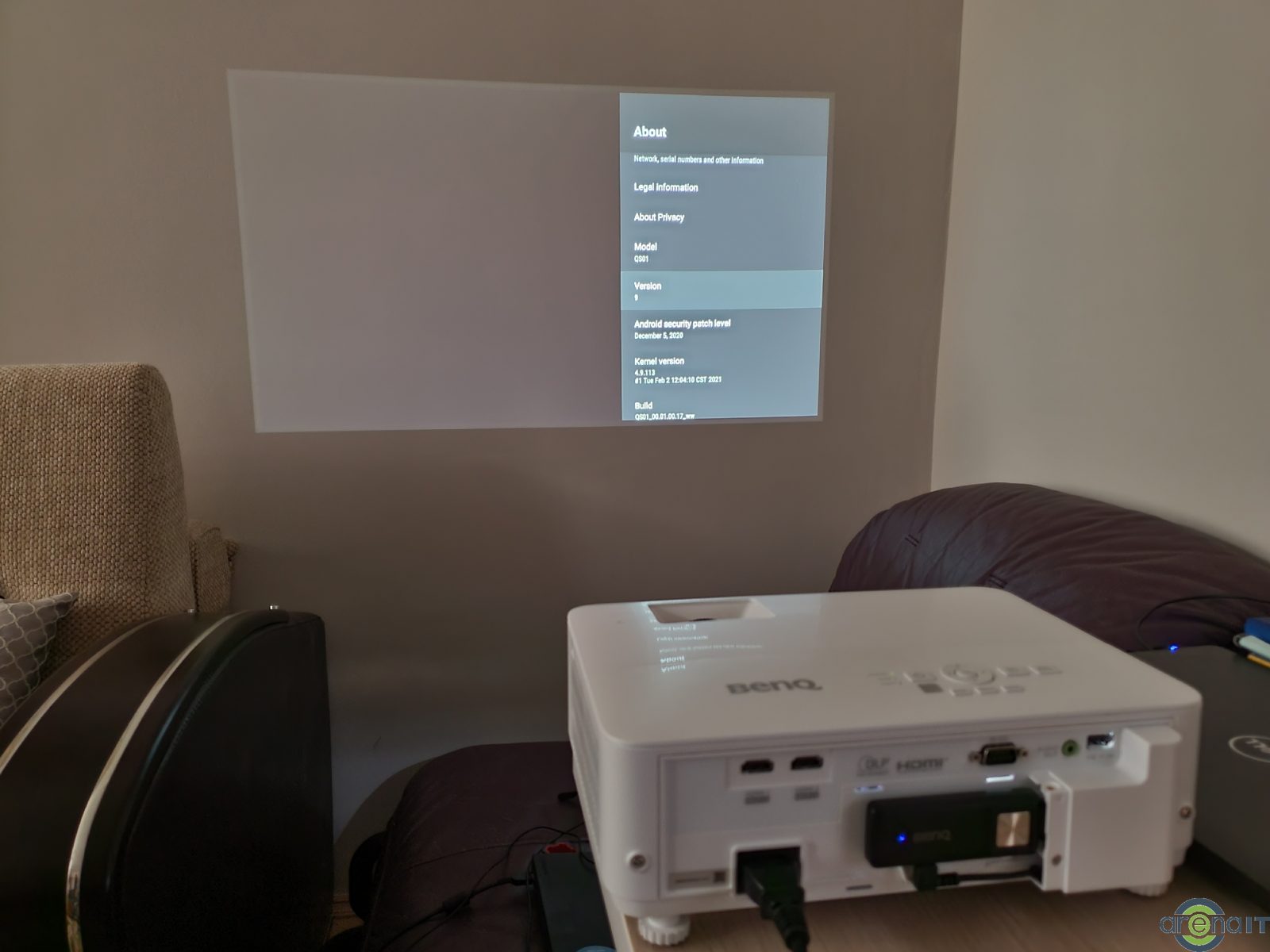 Acesta vine echipat cu o boxa de 5W si este compatibil cu AndroidTV, in pachet fiind insotit de un HDMI media streamer BenQ QS01. Acesta evident poate face streaming de continut 4K si este compatibil cu retele wireless de 2.4Ghgz precum si cu cele de 5Ghz. Foloseste un SoC Amlogic S905 Y2, Quad A53, un GPU Mali-G31 MP2 are 2GB DDR RAM si 16GB memorie interna din care 11 sunt disponibili pentru utilizator. Ruleaza Android TV versiunea 9 si vine cu GooglePlay de unde se pot instala aplicatiile dorite.