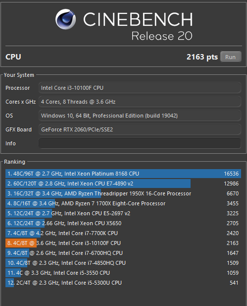 În Cinebench R20 a scos un scos de 2163 puncte, slăbuț fata de concurenta, însă este suficient de puternic încât să duca orice joc. În PassMark acest procesor are un scor de 9137 puncte. Din nou, nu foarte mare dar nici foarte rău.