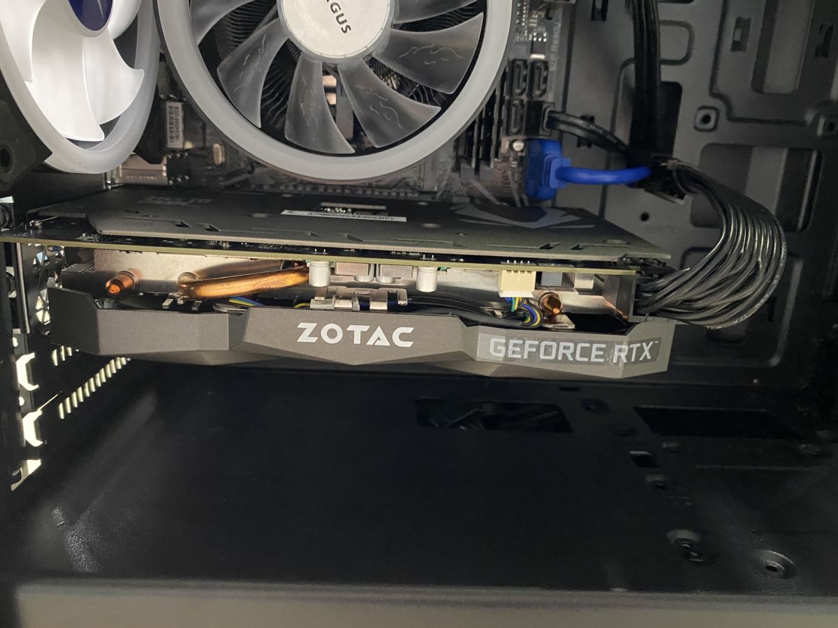 Placa video, care contează enorm de mult în gaming, este un RTX 2060 de la Zotac. Și ea silențioasă și puternica. Modelul de la Zotac nu are nici un element special, este o placa mica și pe care probabil o cunoașteți toți. Performantele lui RTX 2060 sunt deja cunoscute, iar mulți o cunosc drept cea mai ieftina placa video care oferă Ray Tracing și DLSS 2.0. Are 6 GB memorie RAM și 192 biți.