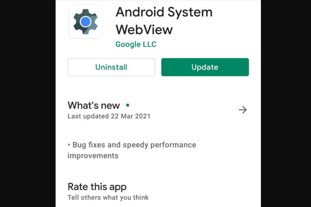 Se intra in play Store, se introduce „Android System WebView” si se instaleaza/actualizeaza.