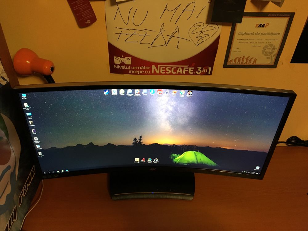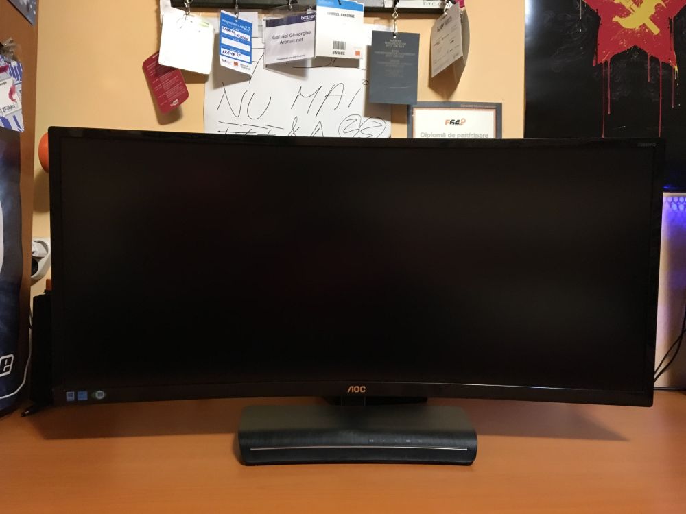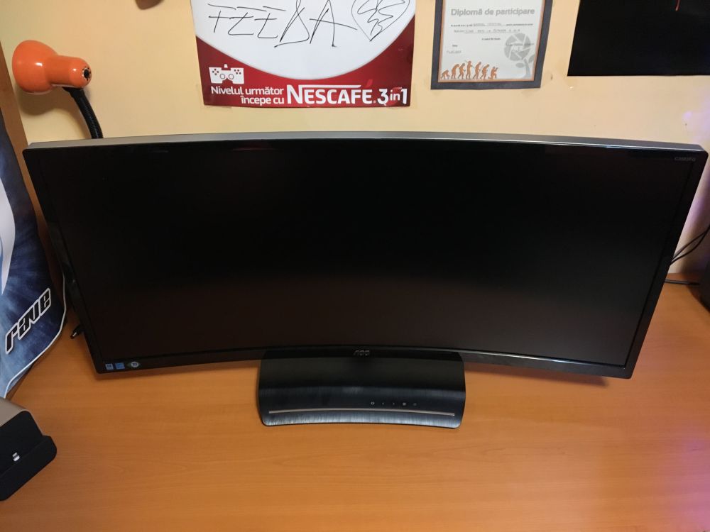 In plus este si un panou curbat. Nu le poti avea pe toate. Curbura nu este una foarte agresiva si iti ofera acel efect de wow doar daca stai la distanta. Tinand cont ca are 35 de inch este cam greu sa-l folosesti pe un birou normal. Ti-ar trebui o distanta de cativa metri pentru a profita la maxim de curbura si de rezolutie.