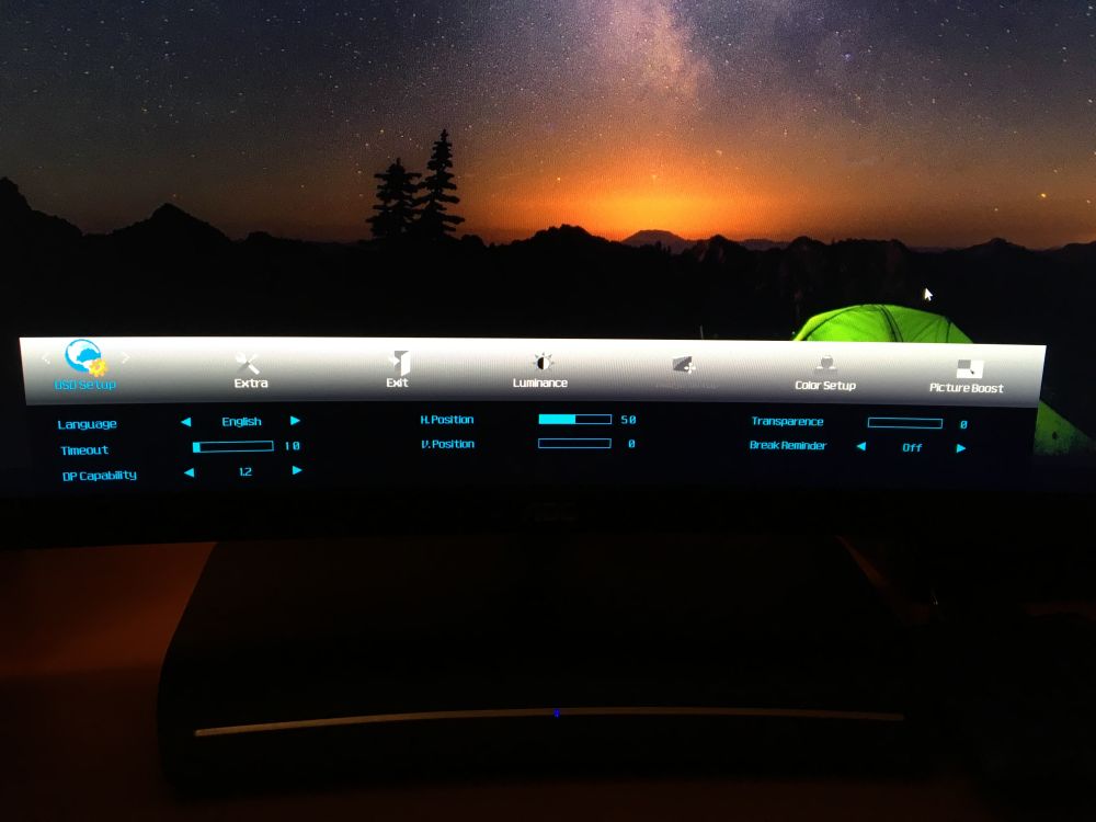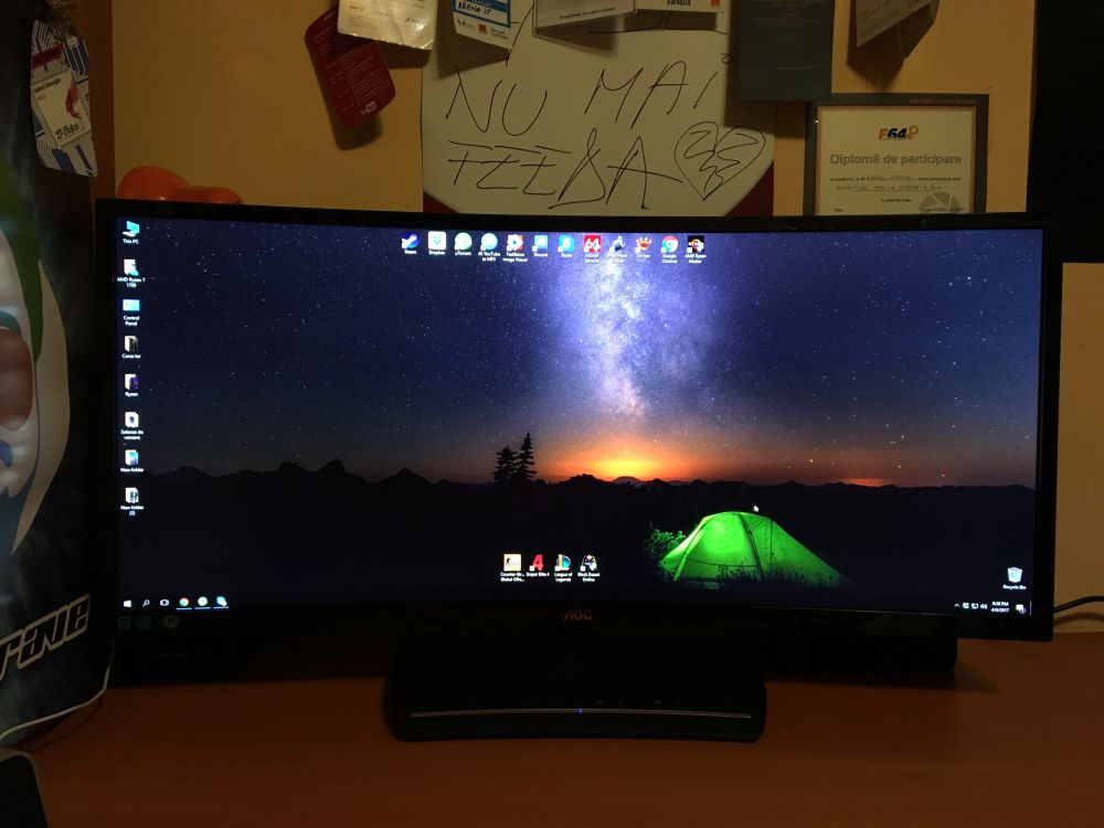 Desi rezolutia pare mare la prima vedere, 2560 x 1080, in realitate nu este chiar asa. Se simte nevoia unei rezolutii mai mari caci pixelii sunt prezenti. Insa cumva am inteles acest sacrificiu. Pentru a avea o rata de refresh mare a fost nevoie sa se scada din rezolutie. Nu ca AOC nu ar avea tehnologia necesara pentru a produce un monitor 4K cu 144 sau 160Hz, insa atunci costurile ar fi fost mai mari.