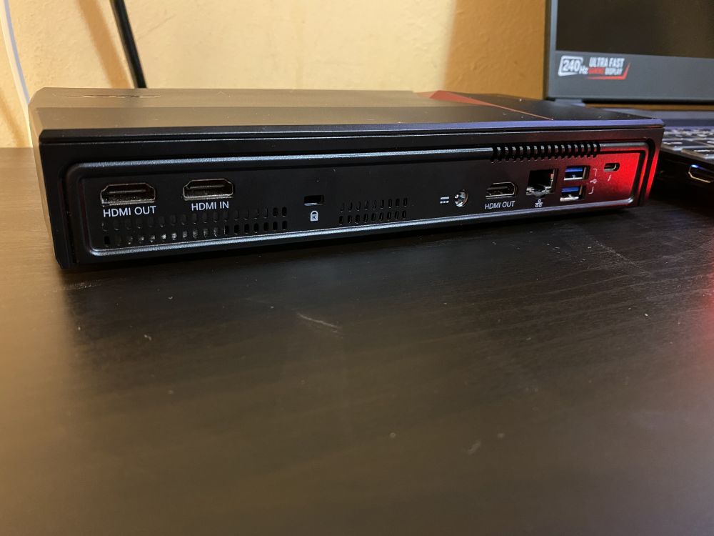 Sunt versiuni cu i7 si cu SSD mai mare, insa eu pe acesta l-am primit. Drept conectica ofera 2x USB pe partea din fata pentru eventuale periferice, 2x HDMI in si out pe spate, port LAN, Wi-Fi, 2x USB 3.0 si inca un HDMI out.