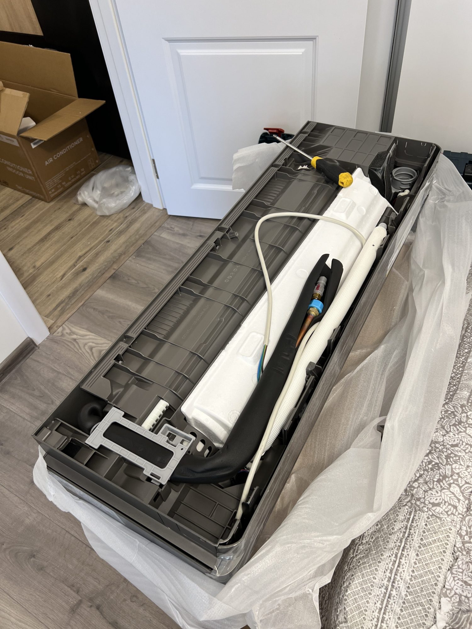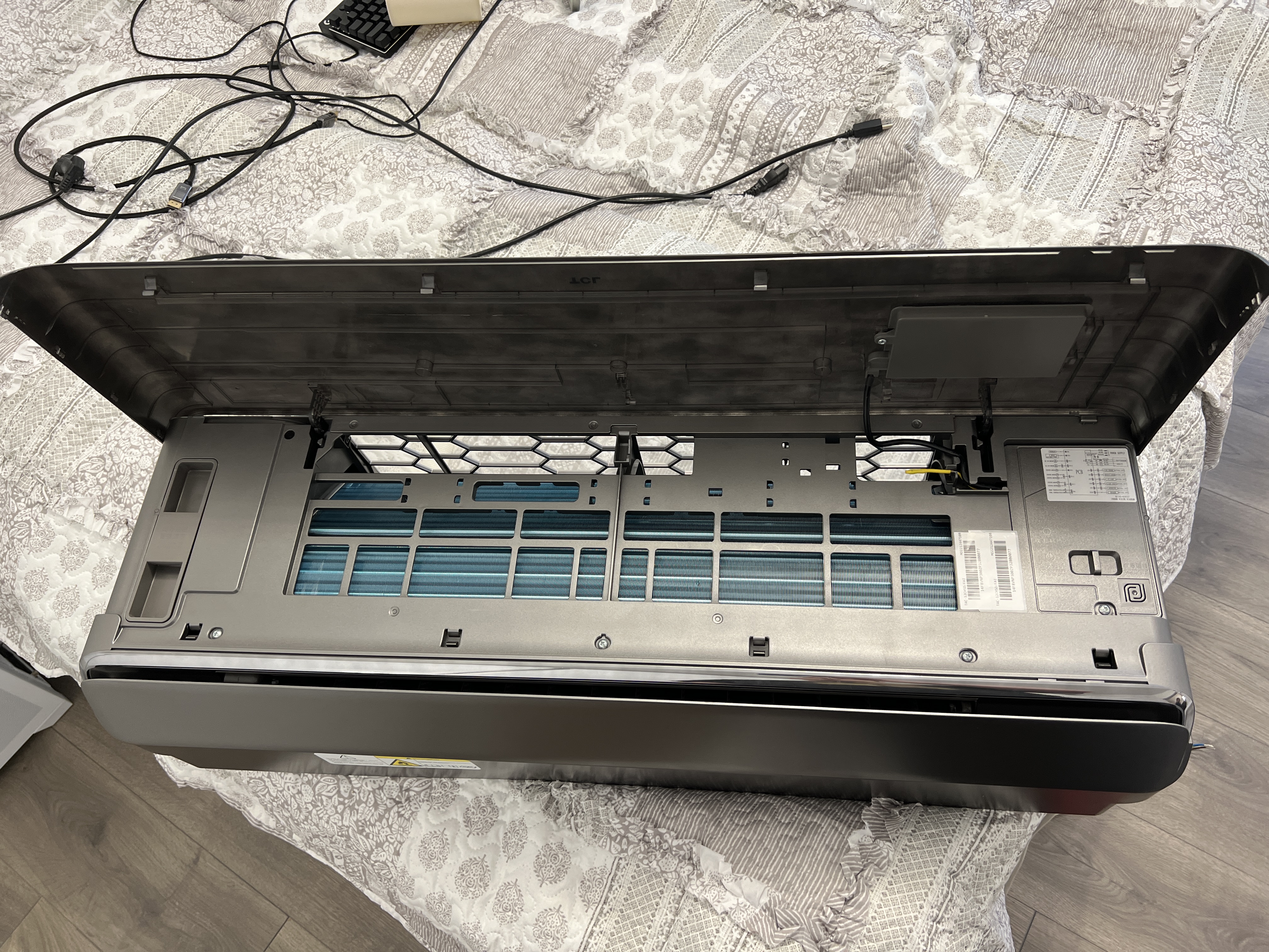 - Este foarte mare unitatea interioara pentru ca un sfert din ea (partea stanga) este turbina pentru fresh-in si filtrul.