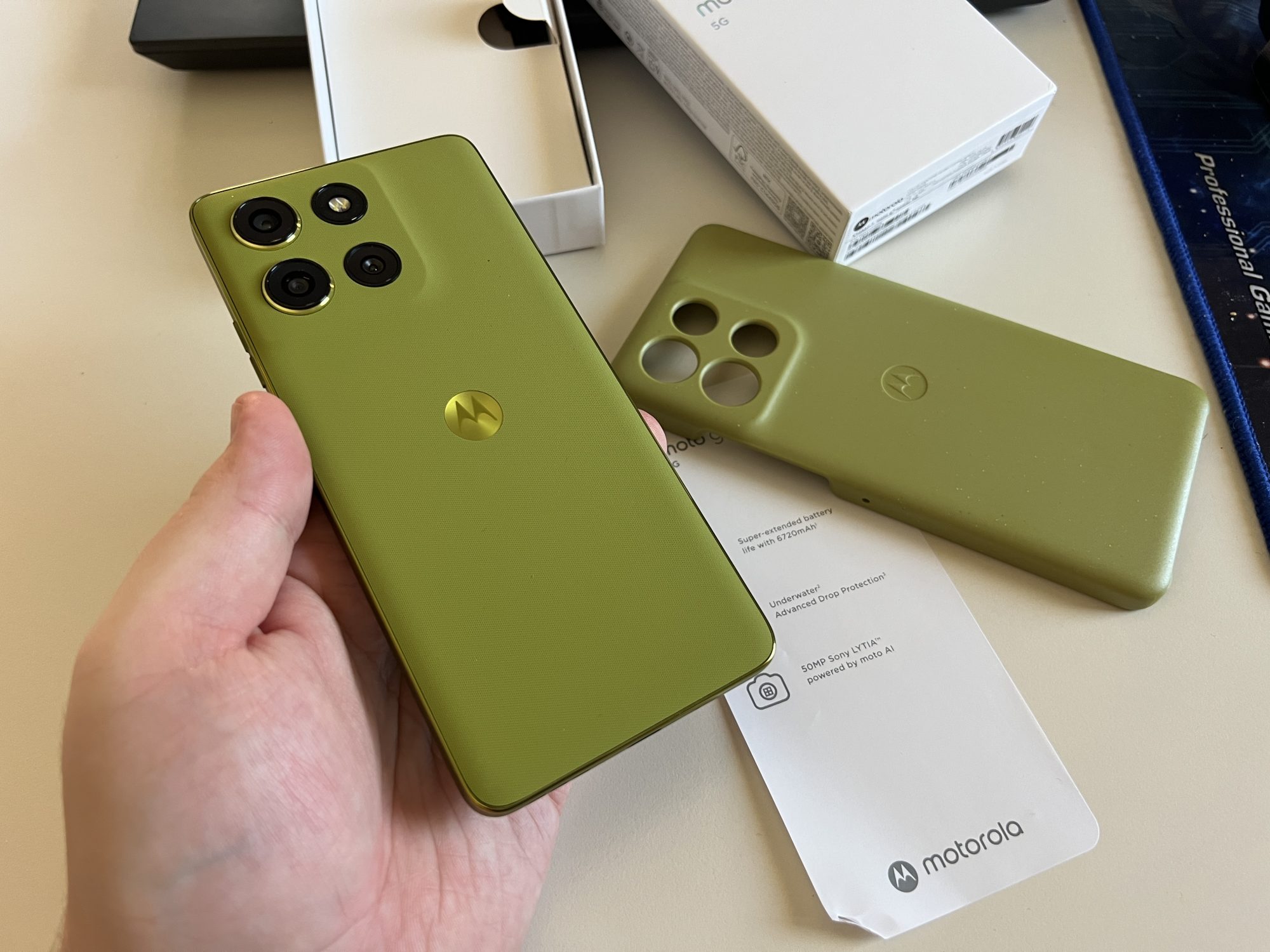 În rest, Moto G86 Power 5G lasă impresia unui telefon solid, cu un design mai degrabă practic decât elegant. Culoarea Golden Cypress îi oferă o notă distinctă, iar materialele par rezistente. În plus, în pachet vine și cu o husă de protecție de aceeași culoare, deja aplicată pe dispozitiv, ceea ce îi sporește utilitatea.