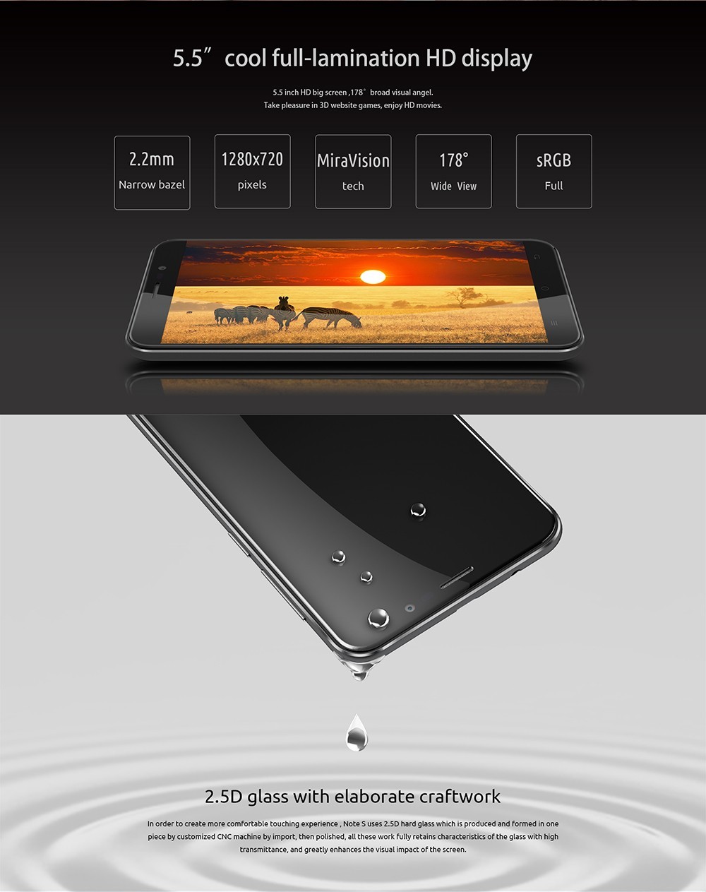 Are ecran de 5.5 inch HD, procesor quad core la 1.3 GHz de la MTK, 2GB de RAM, 16GB de stocare si camere de 5 si 8MP. Este dual-SIM, are baterie de 4150 mAh si carcasa din plastic. Telefonul ar costa 92 de dolari, dar acum este la oferta la 69 de dolari. AICI aveti link-ul cu informatiile necesare.