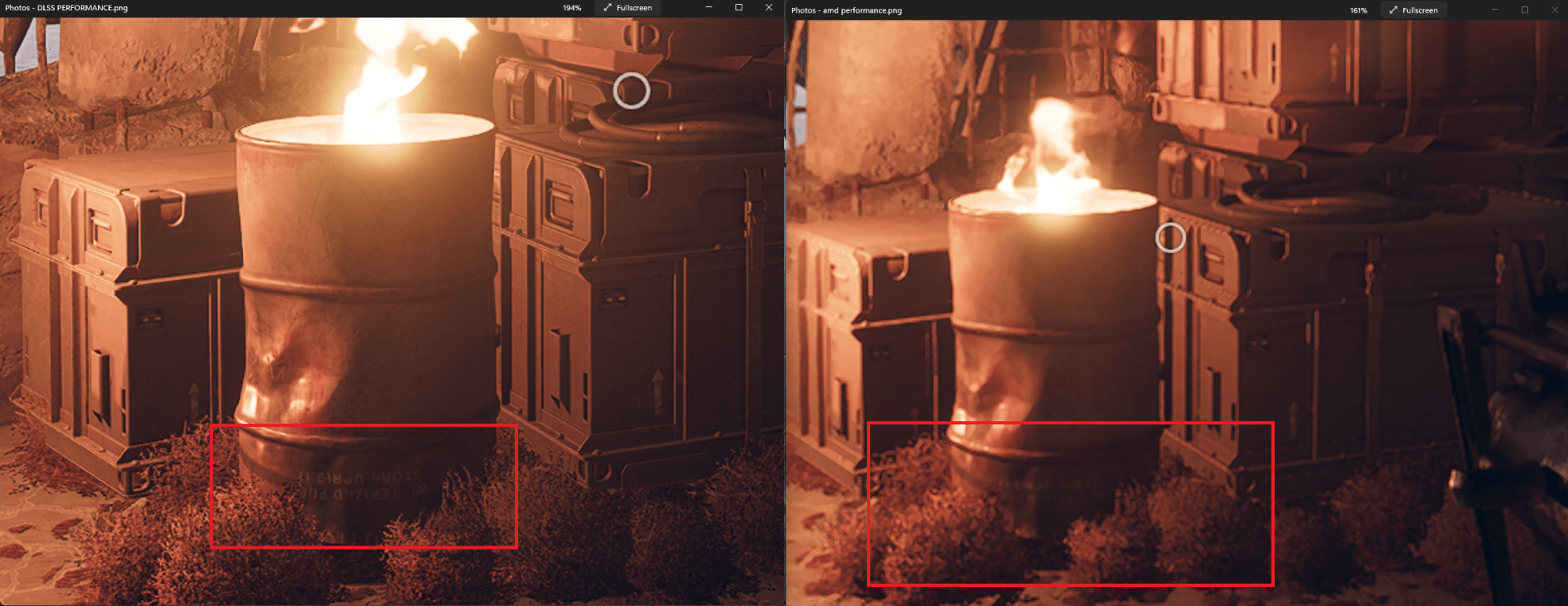 Dupa cum se vede, AMD iti ofera la prima vedere un numar mai mare de FPS-uri pe modurile Quality si Balanced. Insa vreau sa va uitati cu atentie la imagini.