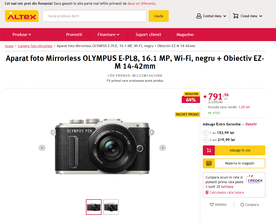 Aparatul foto e ultima bucata, produs expus în Altex Arges, nu se poate comanda online, nu se poate rezerva, eventual se poate verifica starea lui cu un telefon la ei. Bubu, nu cumva de aia te ai răzgândit? Pentru că ai văzut că nu l poți adăuga în coș :)) la tv e stoc epuizat deja.
