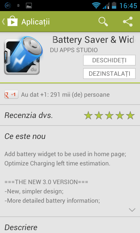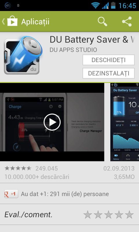 Atunci mi-am dat seama ca trebuie sa nu stau degeaba si ca trebuie sa fac ceva, orice pentru ca telefonul sa-si gestioneze mult mai bine modul in care foloseste bateria. Am intrat pe Google Play și am descarcat toate aplicatiile care aveau in descriere cuvantul Battery. Așa am descoperit DU Battery Saver, o aplicatie pentru dispozitivele inteligente care folosesc Android, dar si sistemul de operare de la Apple.