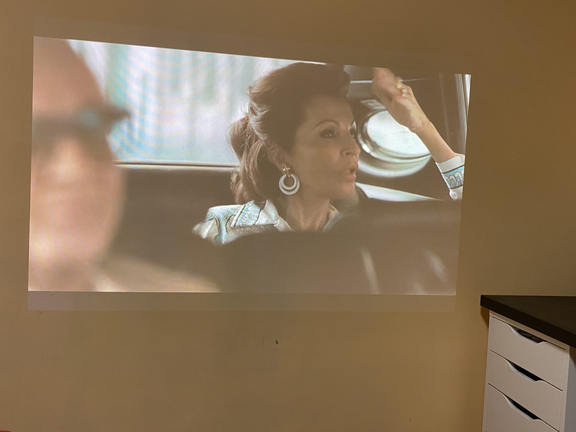 Eu l-am testat pana sa imi renovez camera si din lipsa de spatiu a trebuit sa improvizez cumva pentru a putea testa acest proiector. Dar imediat dupa ce am terminat de renovat camera si am scapat de mobila veche si peretii au devenit albi, mi-am dat seama ca pot monta un proiector.