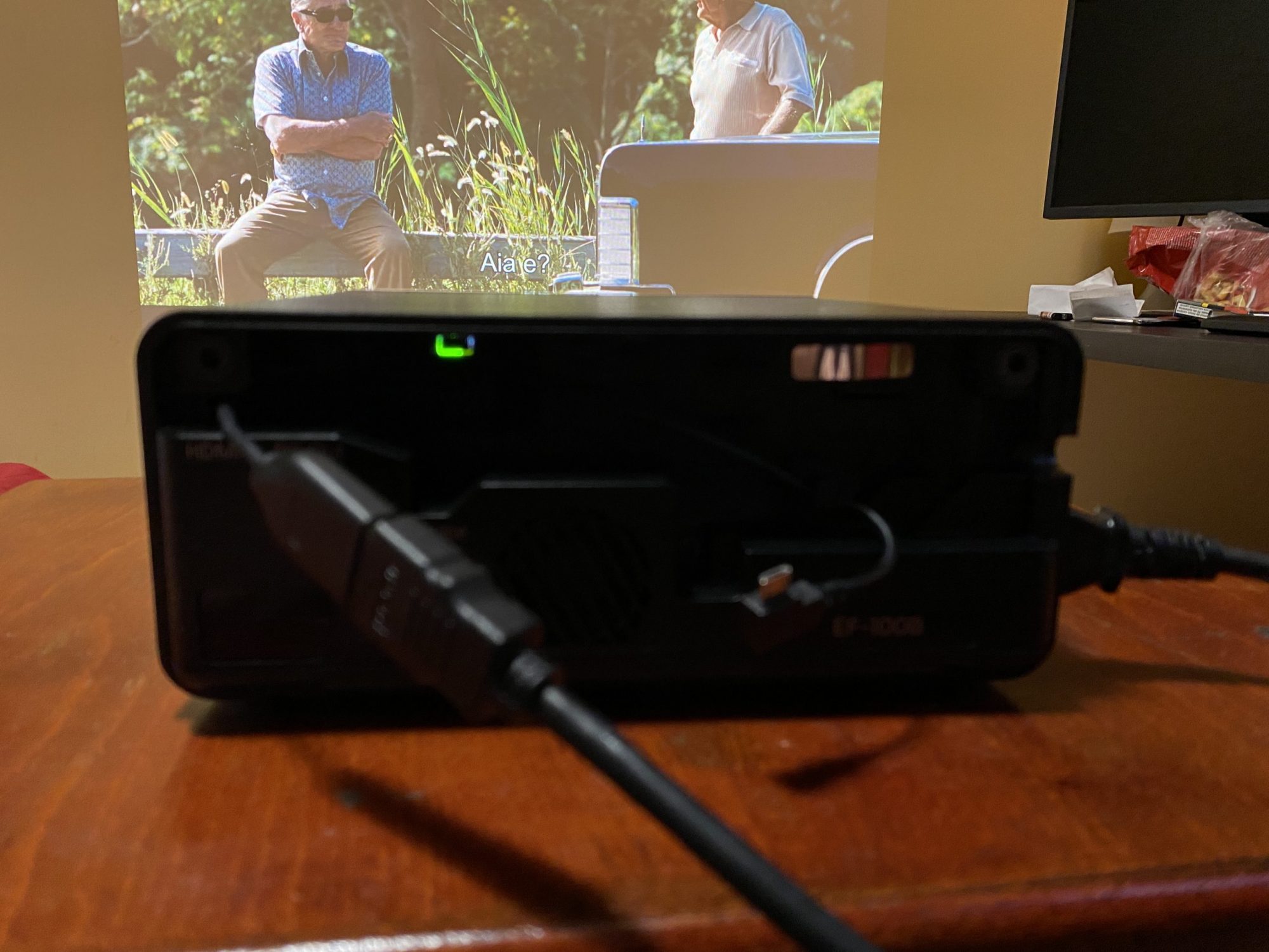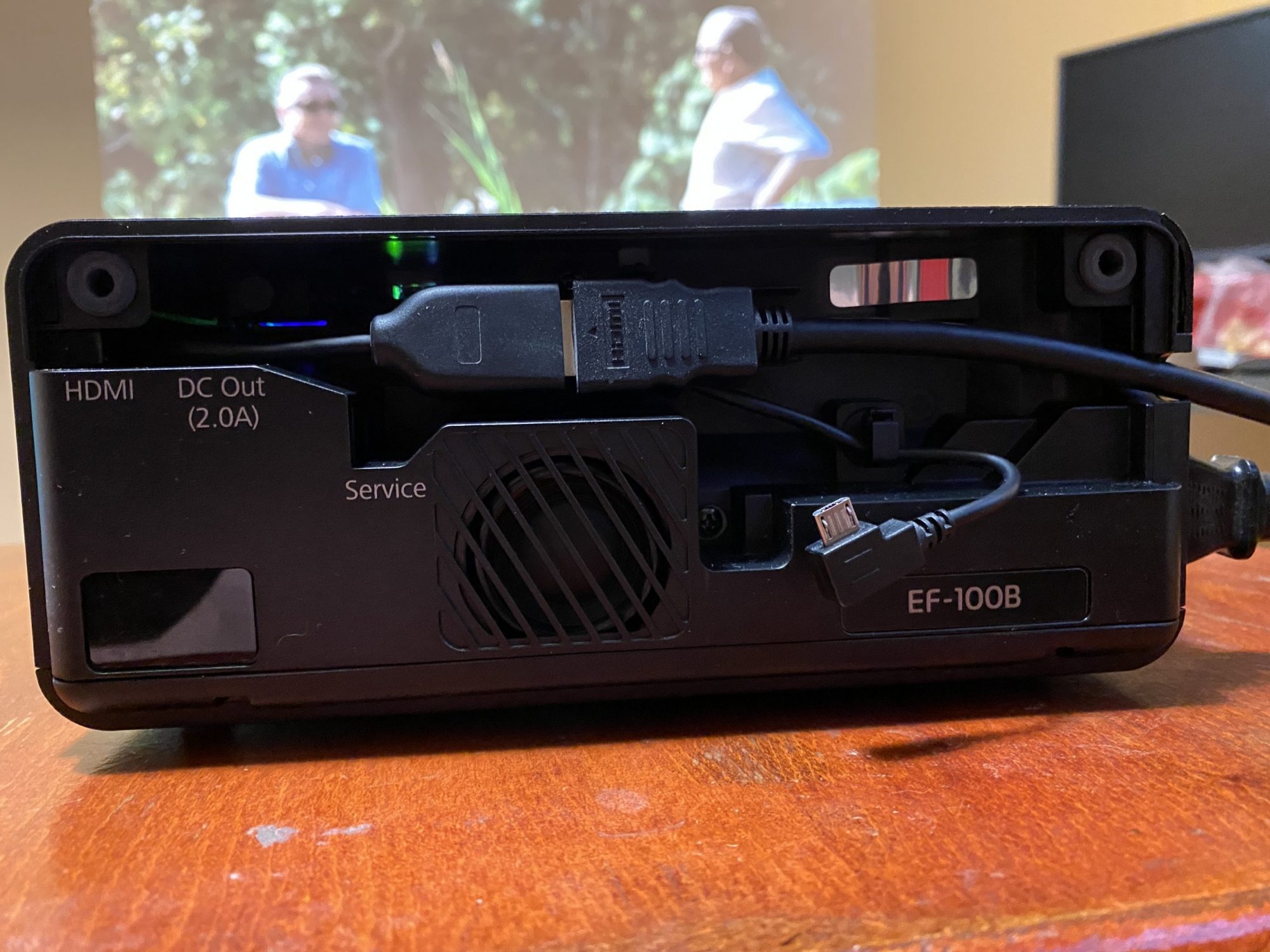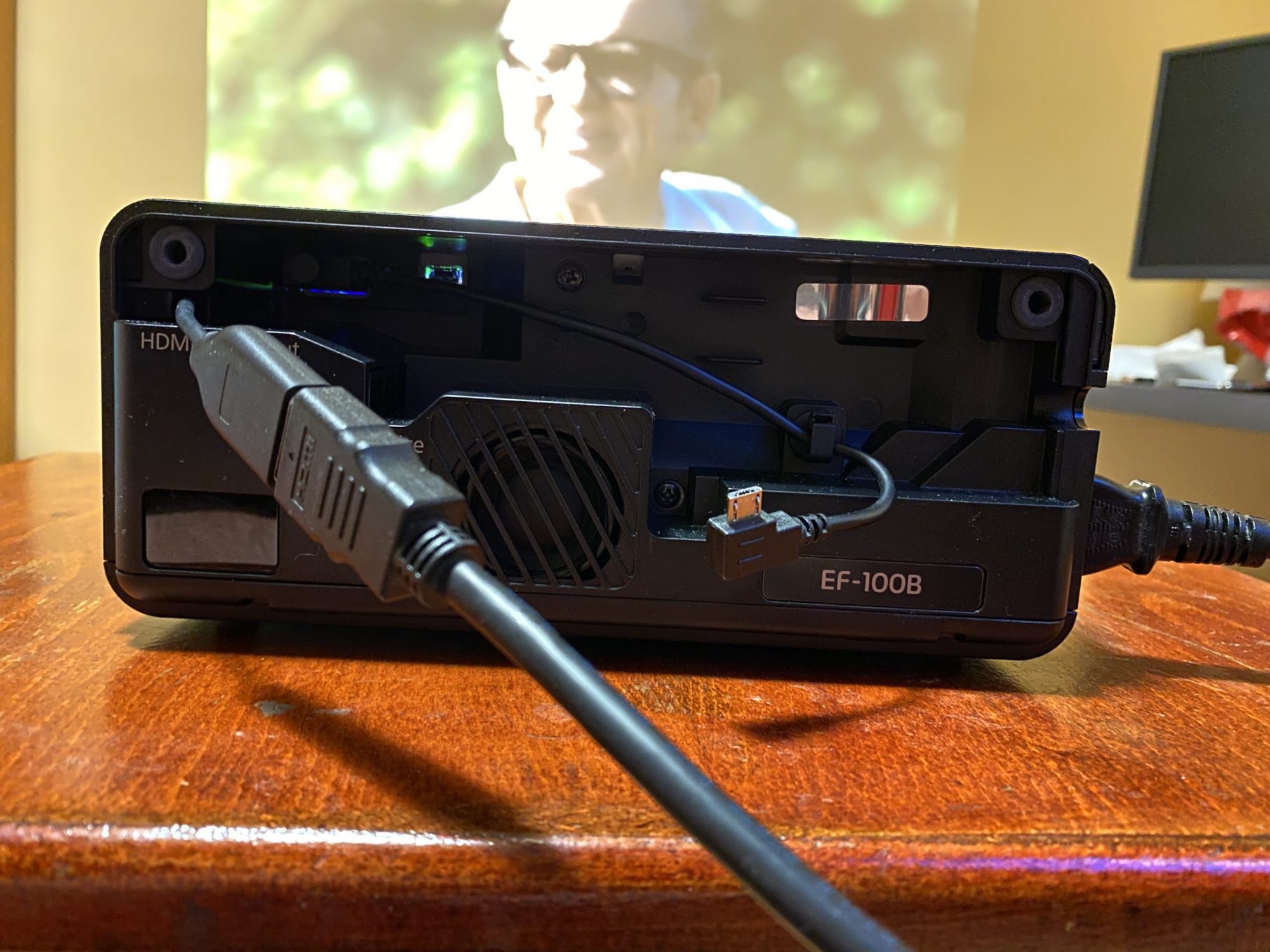 EF-100B m-a surprins placut cu imaginea cinematica pe care a reusit sa o redea intr-un spatiu improvizat si pe un perete GALBEN! Am rulat The Irish Man si filmul s-a vazut superb, mai bine decat pe televizorul meu 4K.
