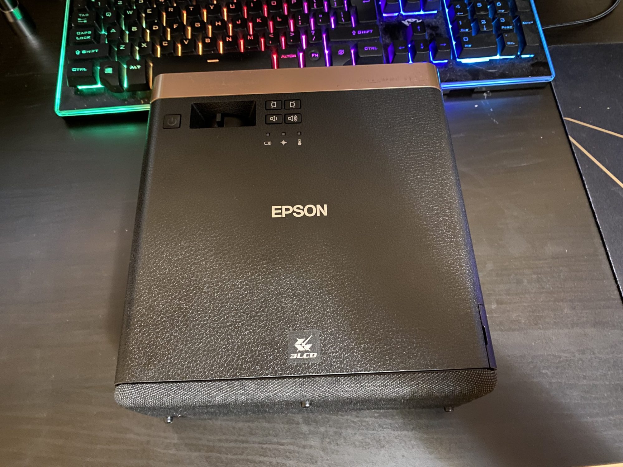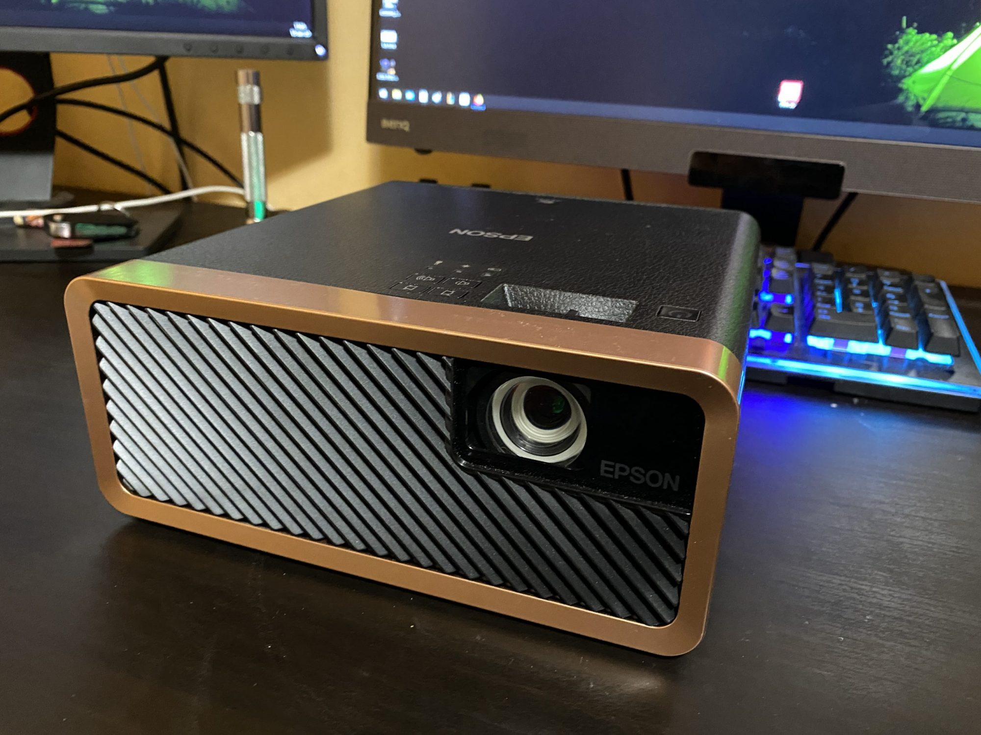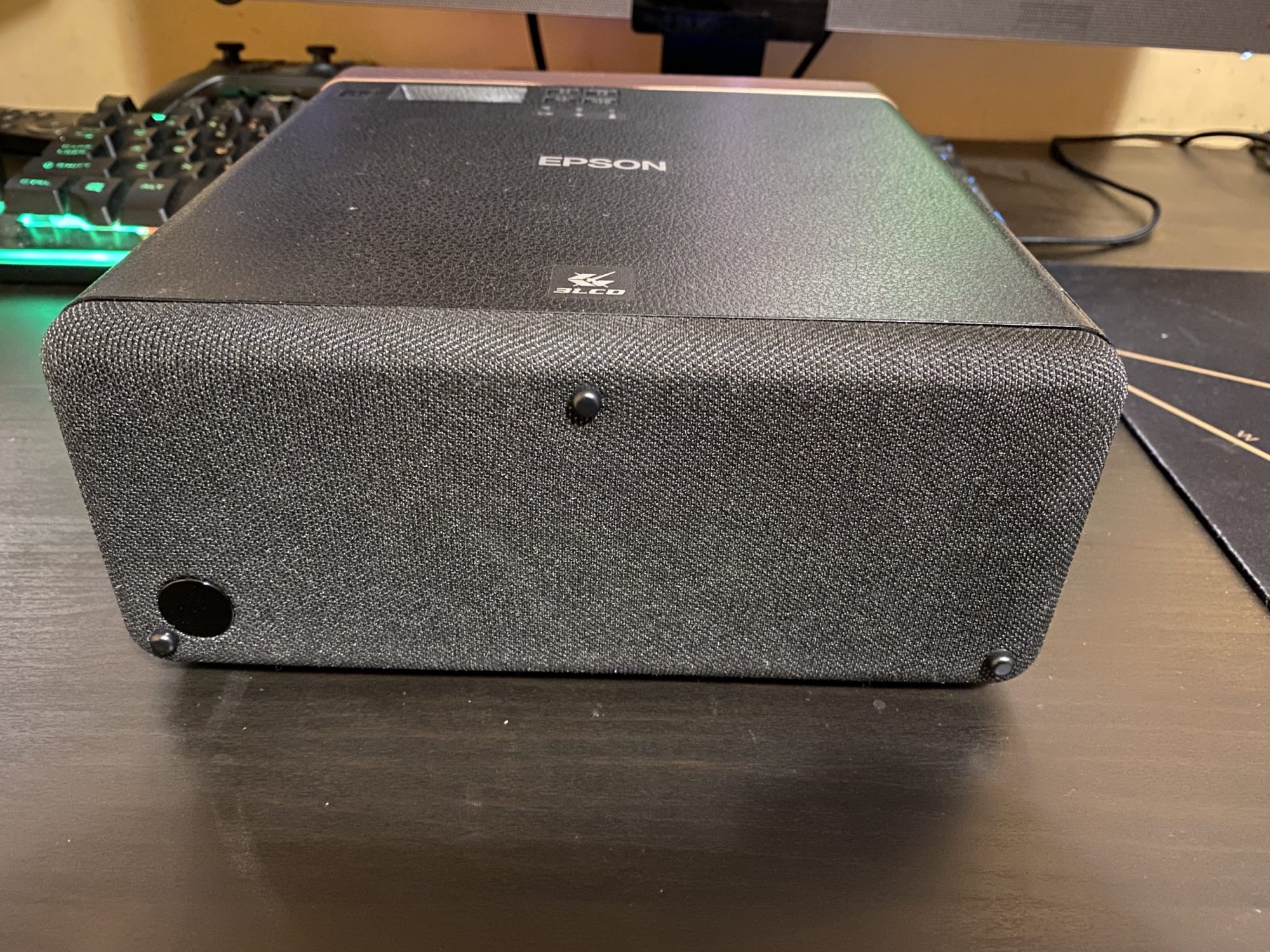 Am aflat ca Epson produce proiectoare foarte bune pentru toate mediile de utilizare si nu sunt de ignorat. EF-100B este un model elegant cu o textura ce imita pielea si insertii din plastic auriu care il fac sa para un produs premium foarte elegant. Practic nu vrei sa-l ascunzi la cat de bine arata.