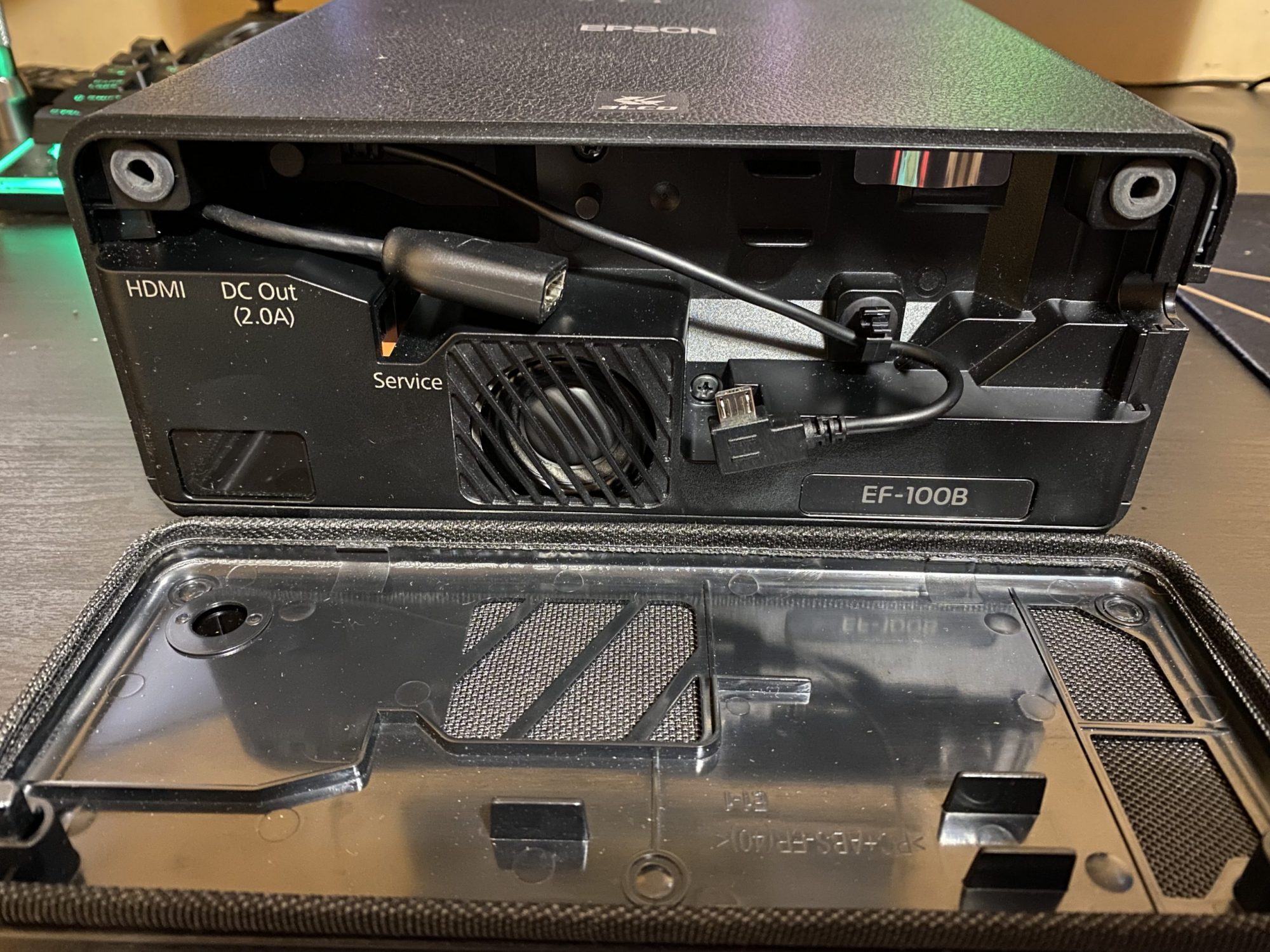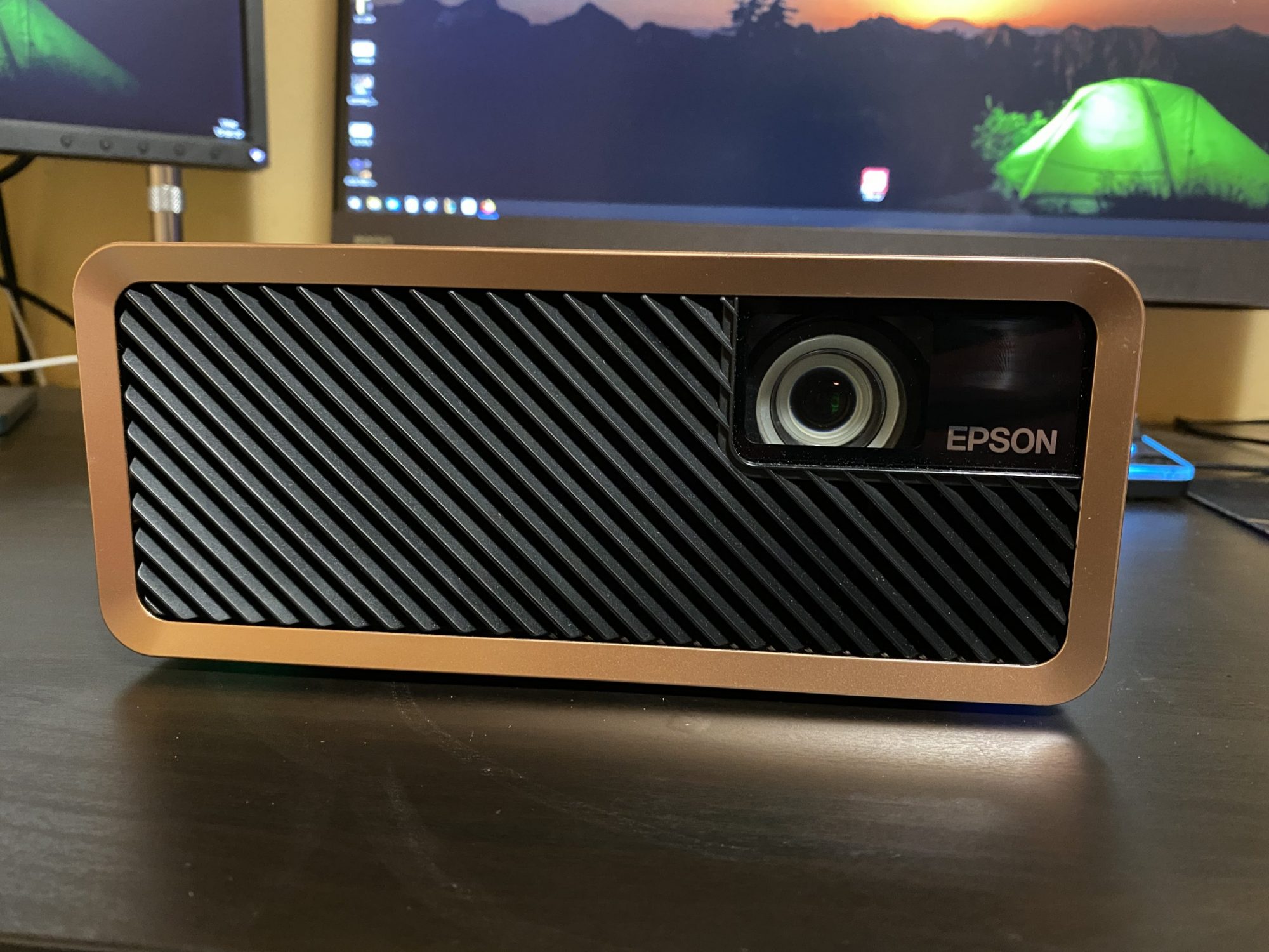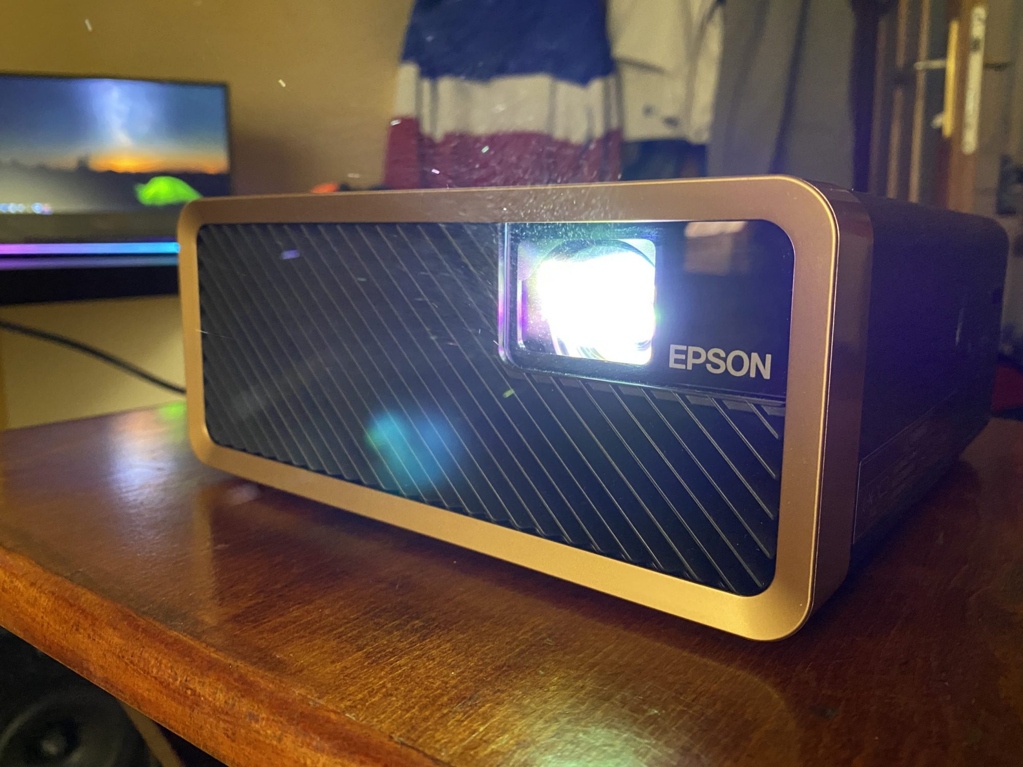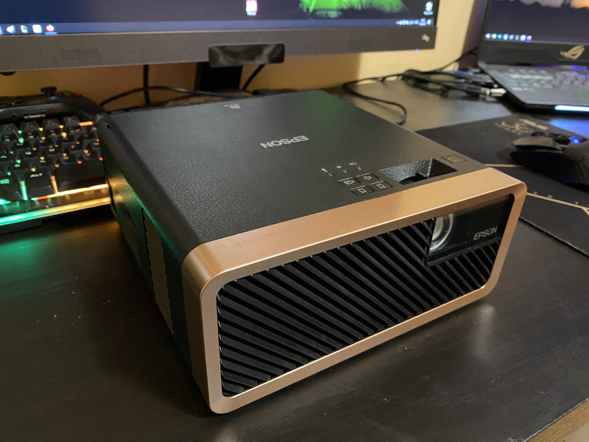 Am aflat ca Epson produce proiectoare foarte bune pentru toate mediile de utilizare si nu sunt de ignorat. EF-100B este un model elegant cu o textura ce imita pielea si insertii din plastic auriu care il fac sa para un produs premium foarte elegant. Practic nu vrei sa-l ascunzi la cat de bine arata.