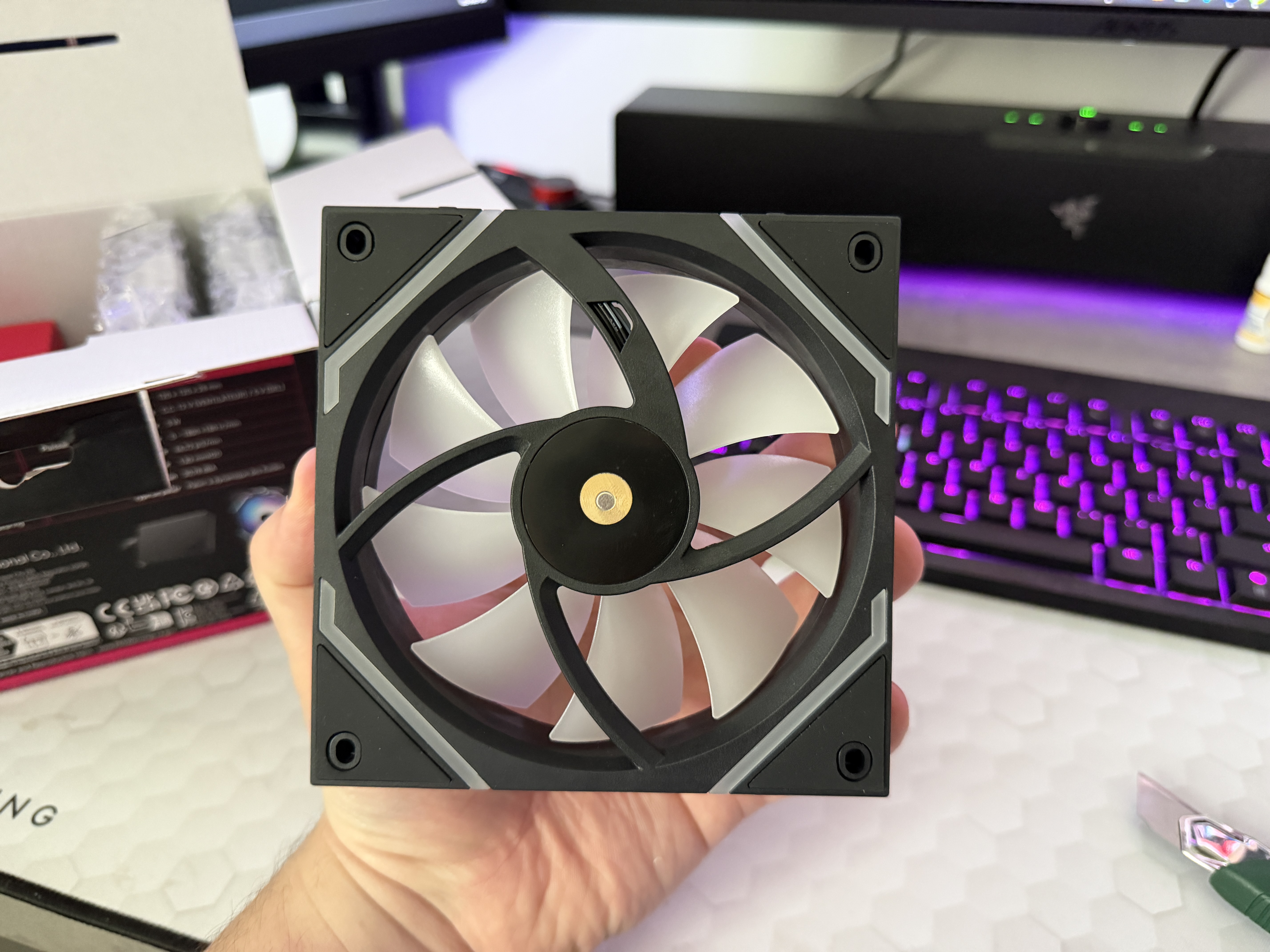 Modelul folosește pale reverse blade, adică poți monta ventilatoarele ca intake și totuși să vezi partea estetică din interior, nu spatele ramei și al motorului. Este un detaliu mic, dar contează enorm în carcase cu sticlă, în special când ai ventilatoare pe față sau jos și vrei să arate bine fără să întorci airflow-ul pe dos.