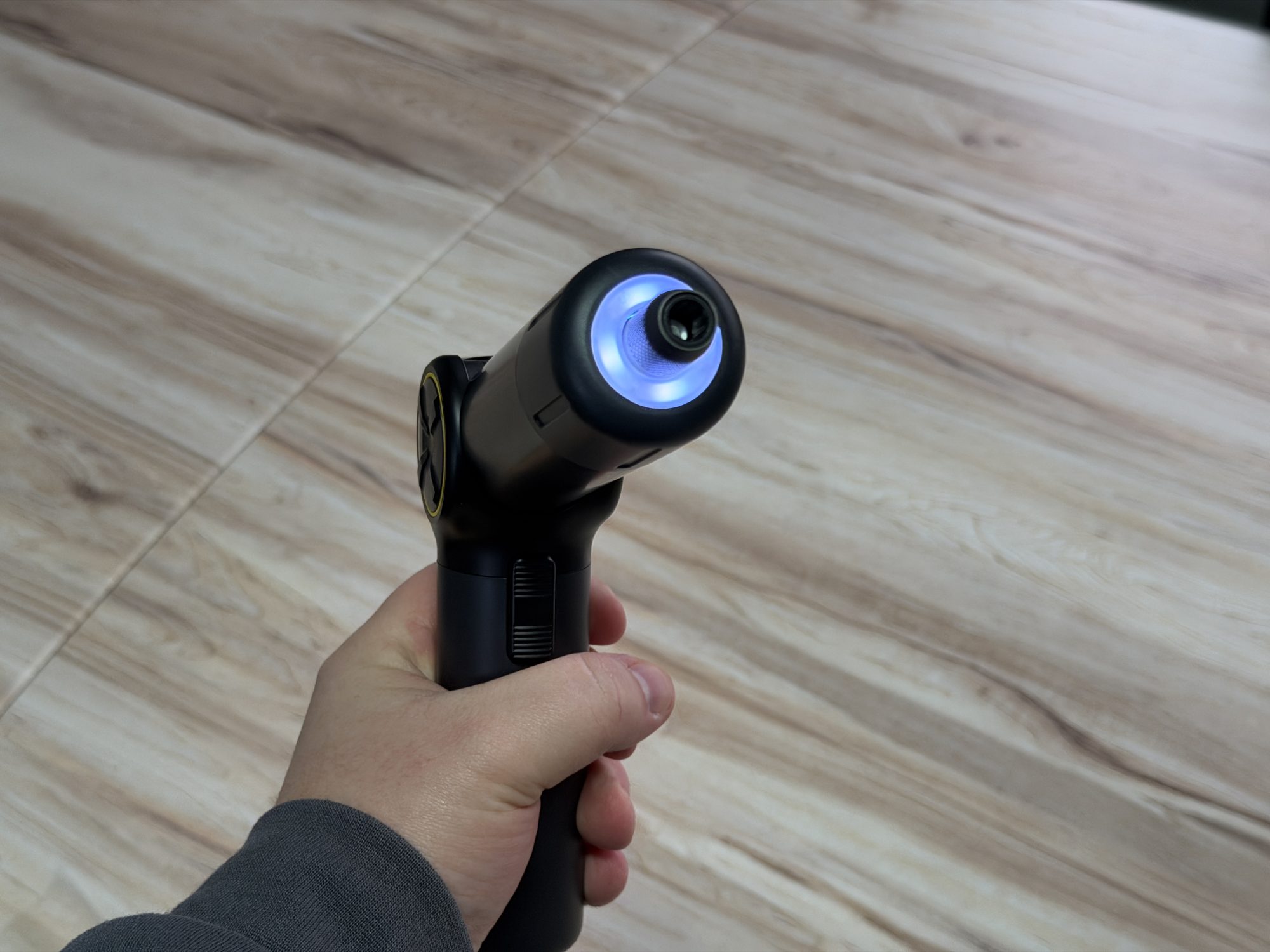 Viteza de rotație este între 100 și 250 RPM, suficientă pentru treburi casnice și montaj ușor, fără să simți că îți scapă unealta de sub control. Are și LED în vârf, ceea ce ar trebui să fie standard la orice unealtă de genul, pentru că de obicei șuruburile importante sunt fix în cele mai prost iluminate locuri. Se încarcă prin USB-C și are o baterie de 2500 mAh. Eu nu am reușit să o descarc și nici măcar nu am observat vreo scădere serioasă a nivelului în timpul asamblării PC-ului.