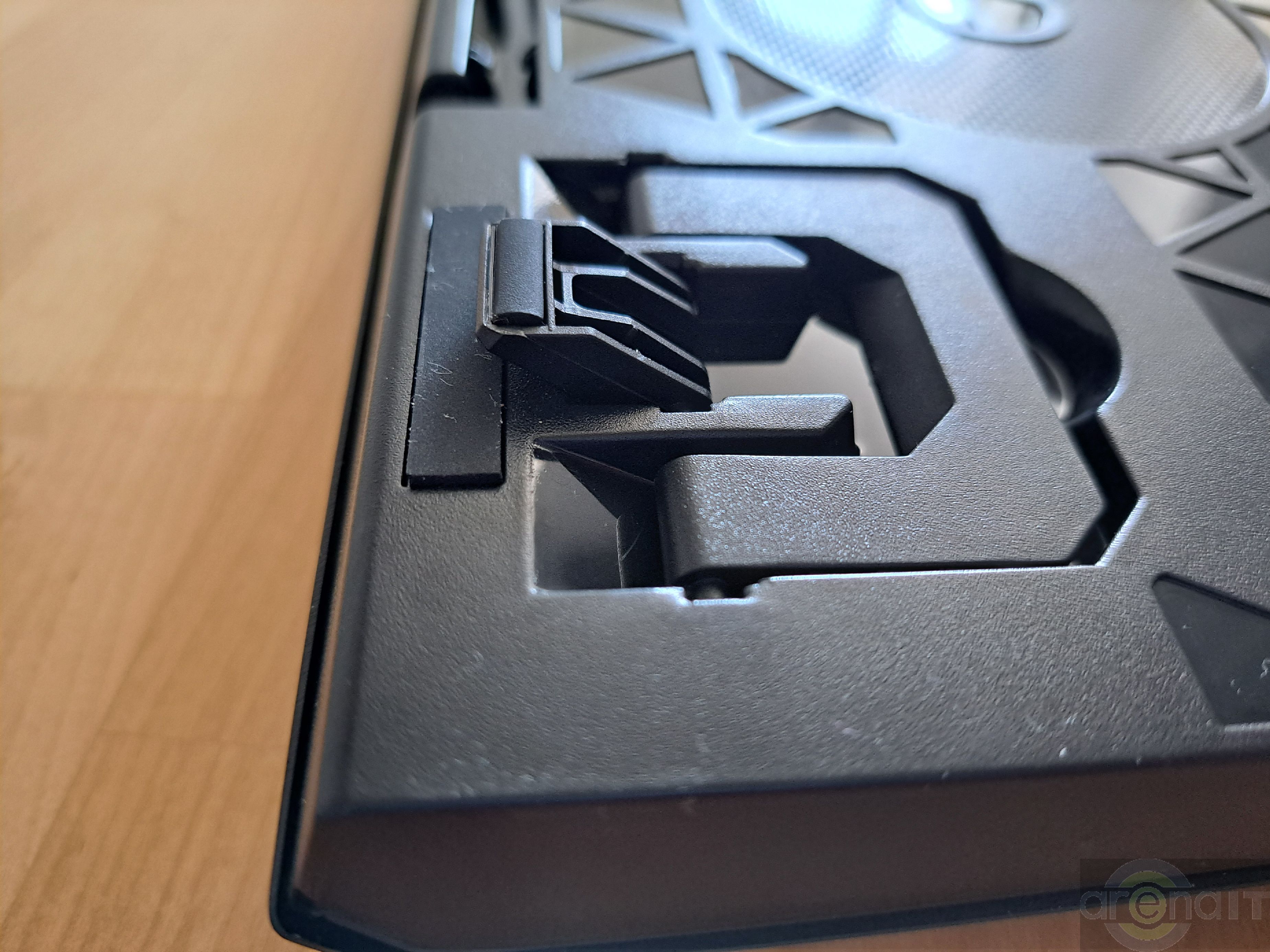 Un palm-rest cu prindere magnetica si caneluri insoteste tastatura in pachet. Acesta este realizat din plastic, iar dupa o utilizare de cateva ore la temperaturi mari, spre deosebire de butoanele tastaturii, acesta a transpirat putin. In rest este comod si ajuta la mentinerea mainilor la o pozitie confortabila in timpul utilizarii tastaturii.